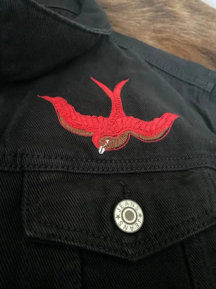 Куртка джинсовая мужская, с вышивкой в виде Розы
