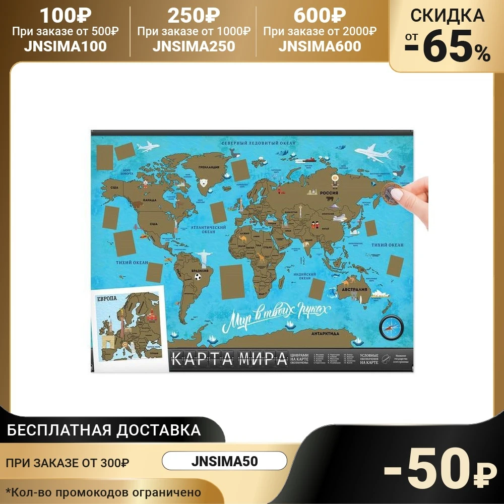 Карта мира со скретч-слоем "Мир в твоих руках"