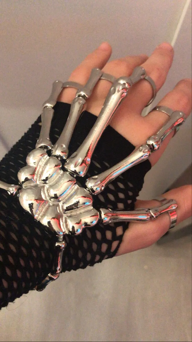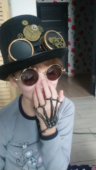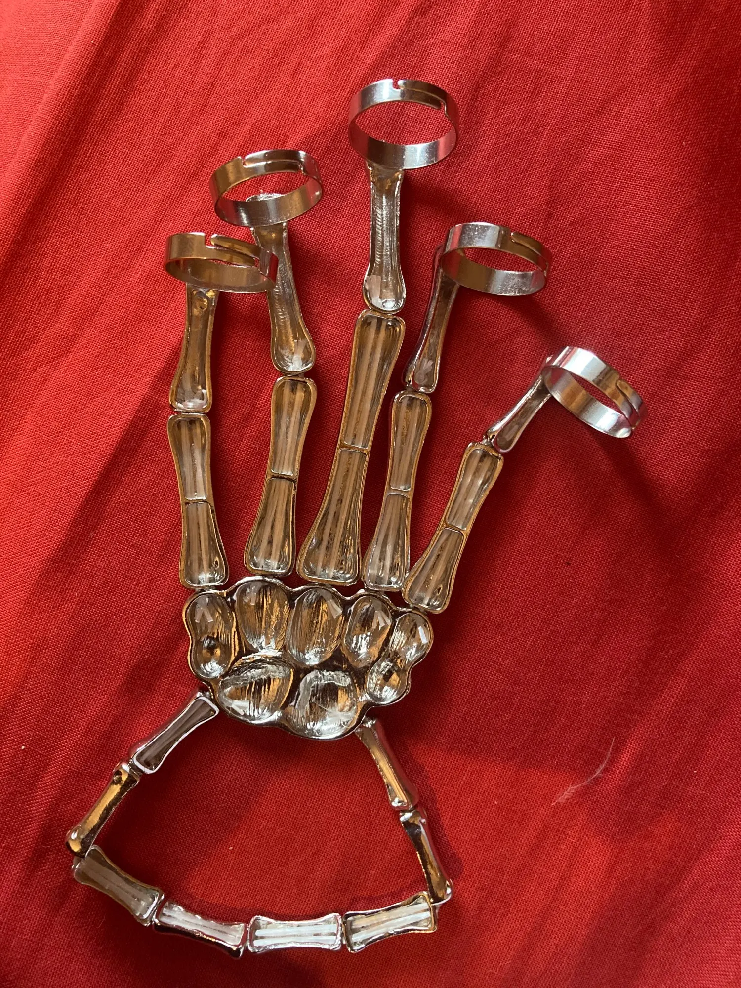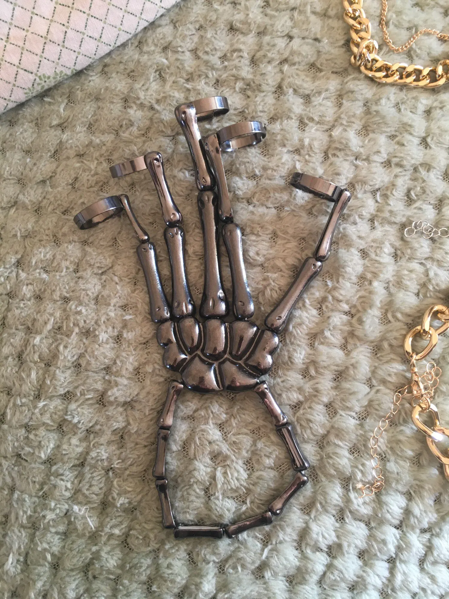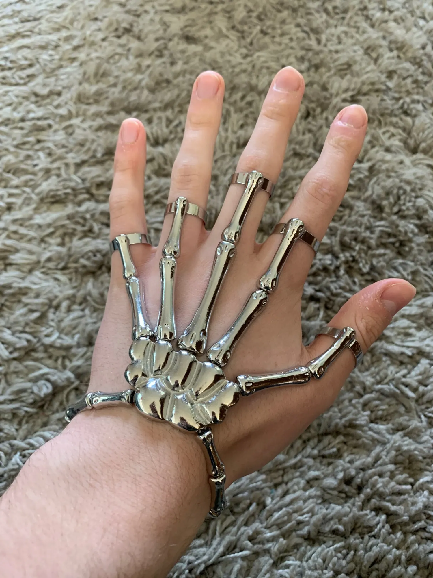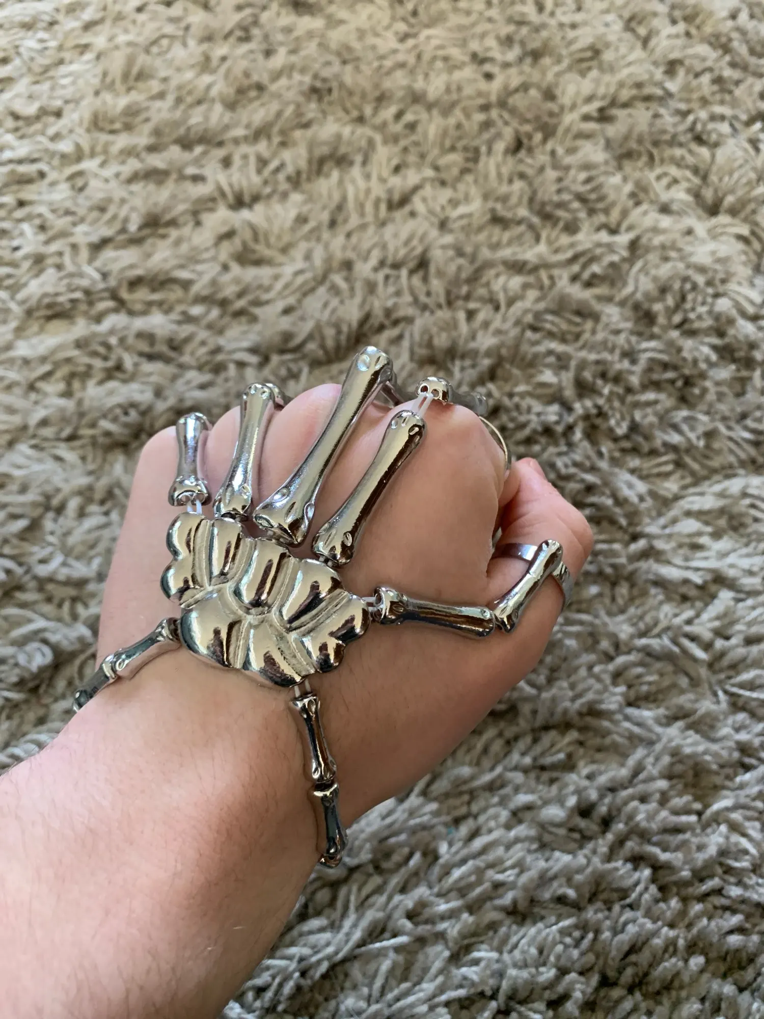 Доча счастлива! Страдает что в школу нельзя такие украшения одевать))) Весь скелет собран на резиночки, одевается несложно. Маловат для ладошки взрослого человека.