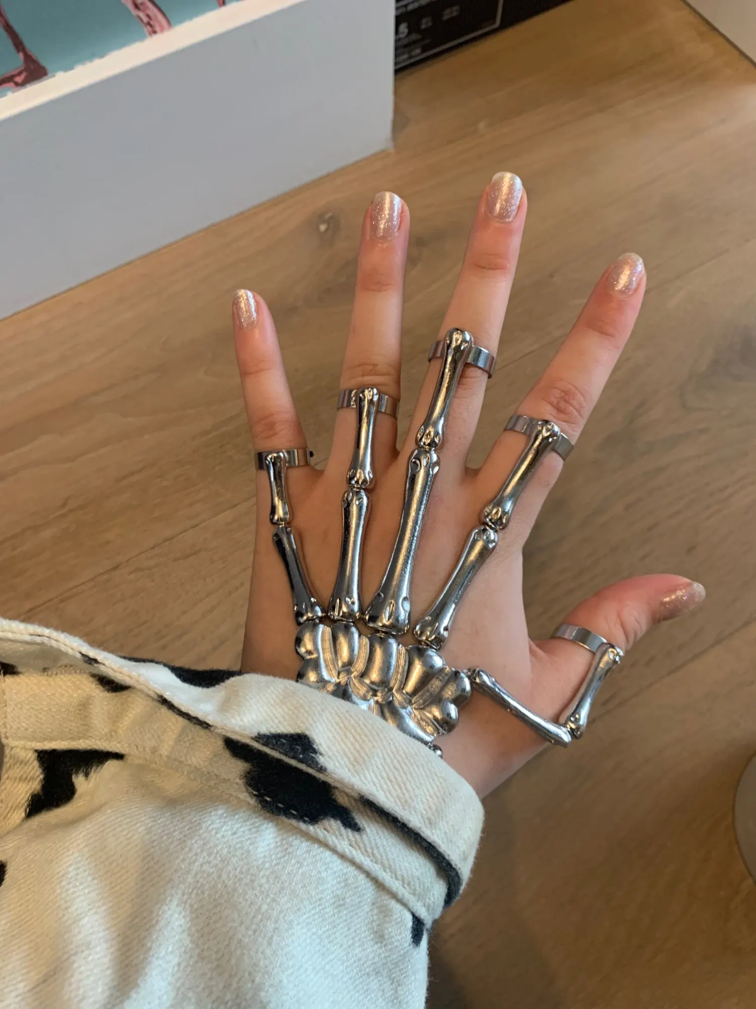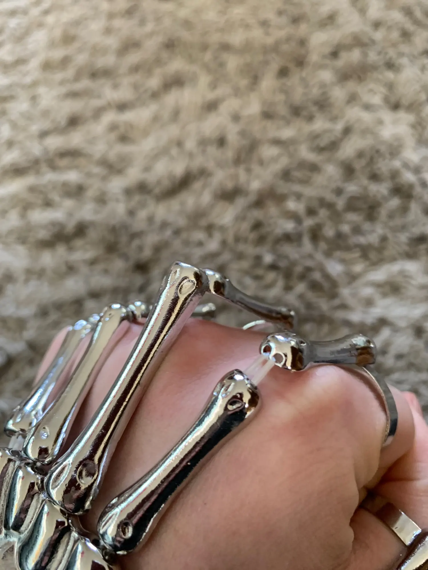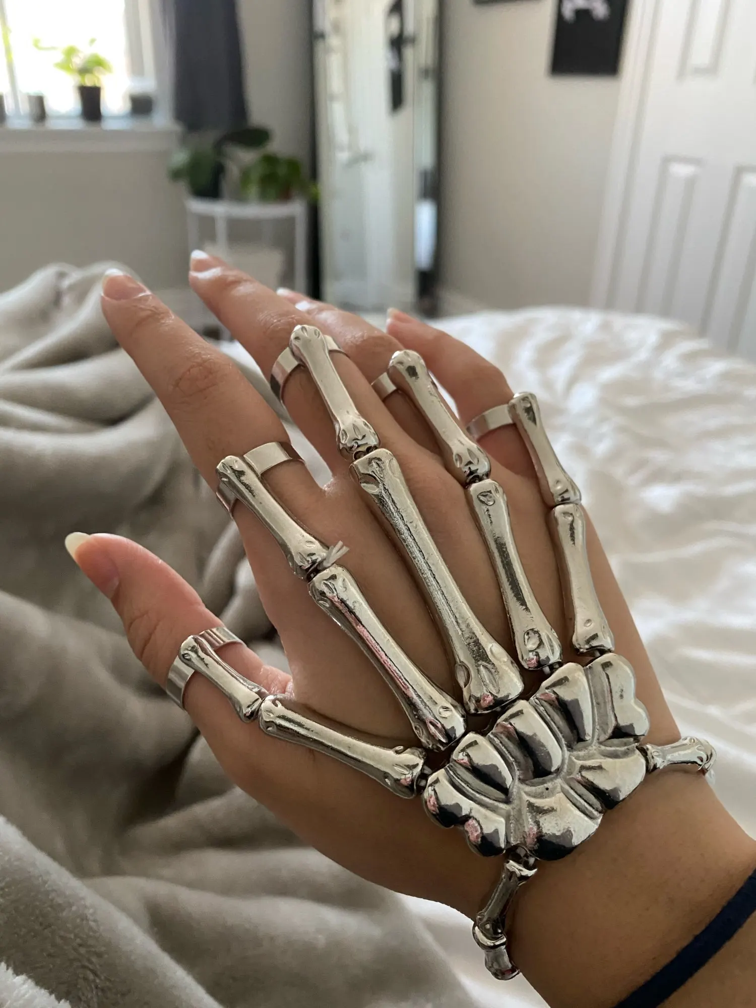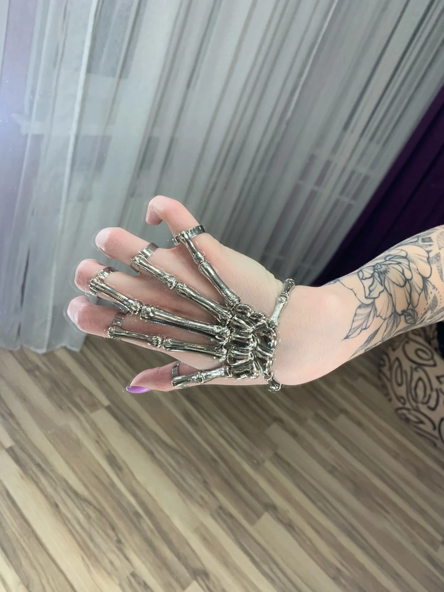 Доча счастлива! Страдает что в школу нельзя такие украшения одевать))) Весь скелет собран на резиночки, одевается несложно. Маловат для ладошки взрослого человека.