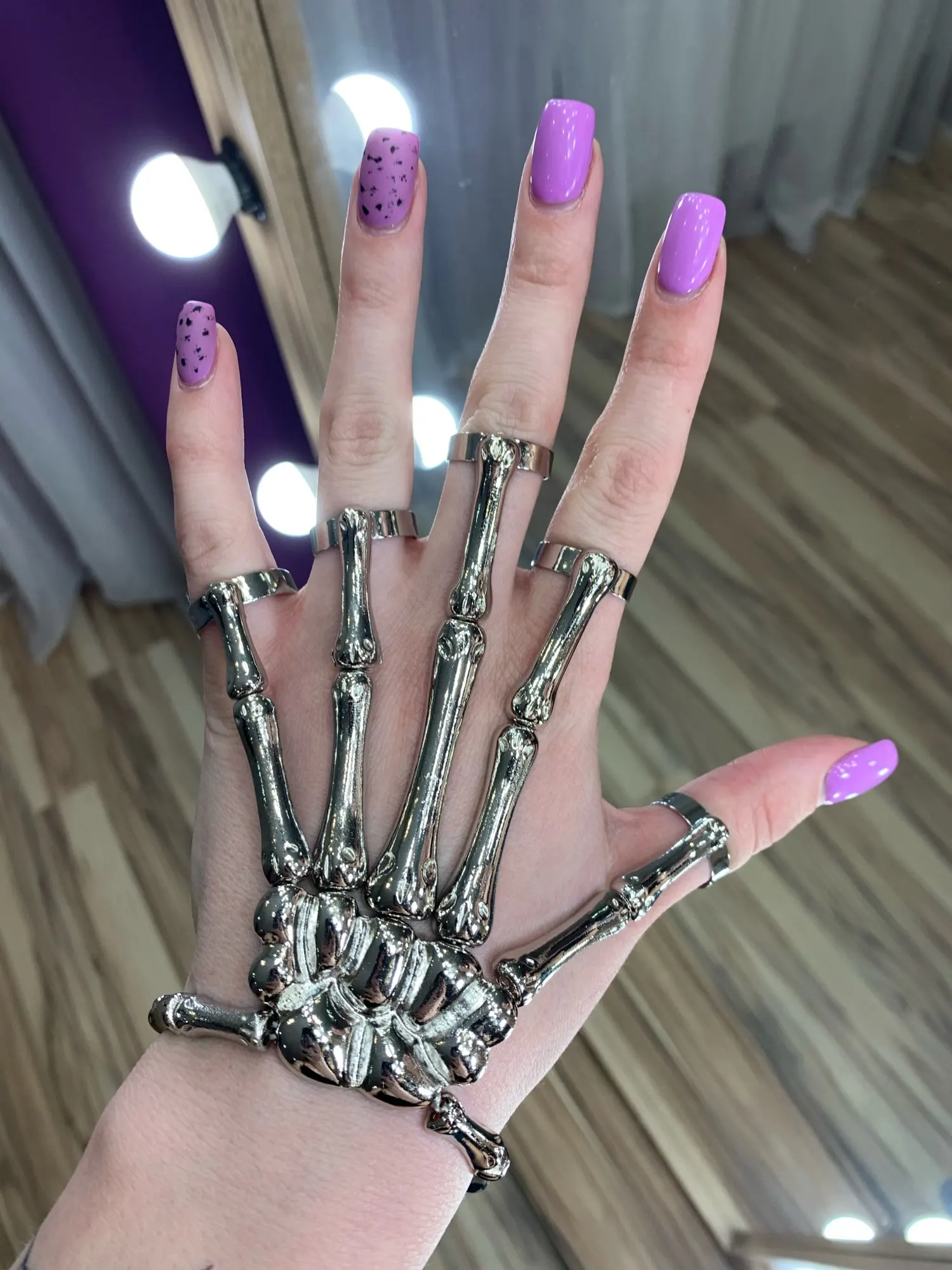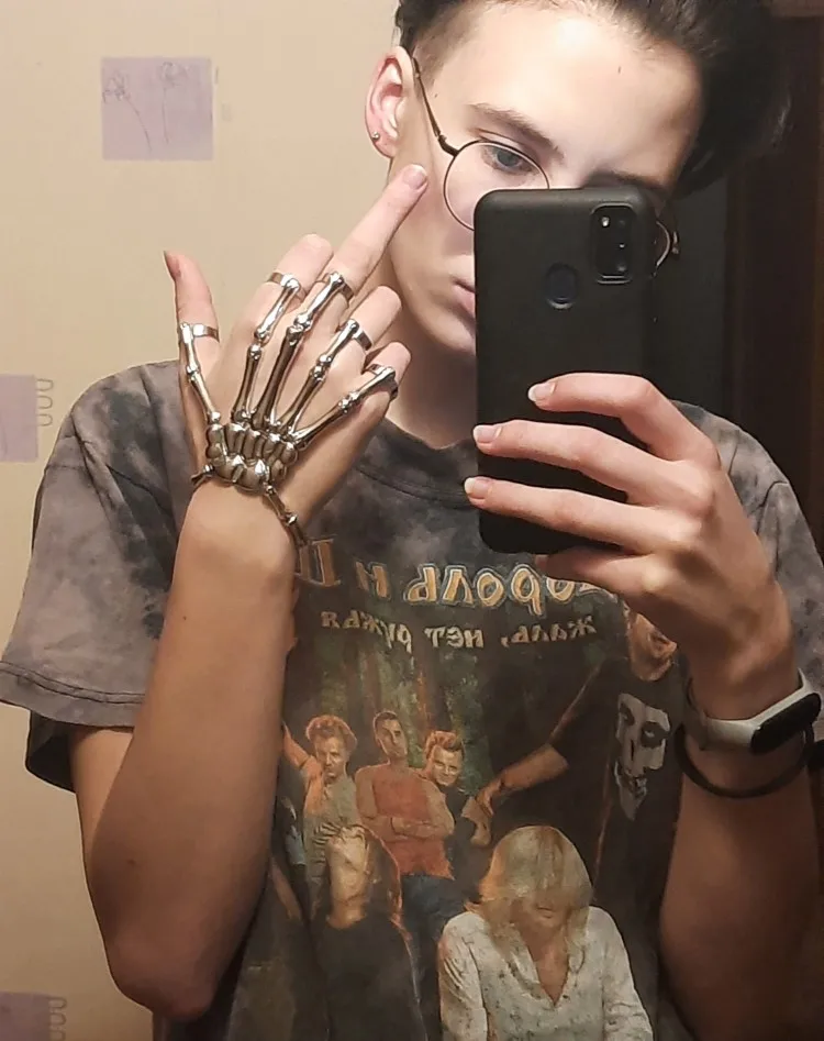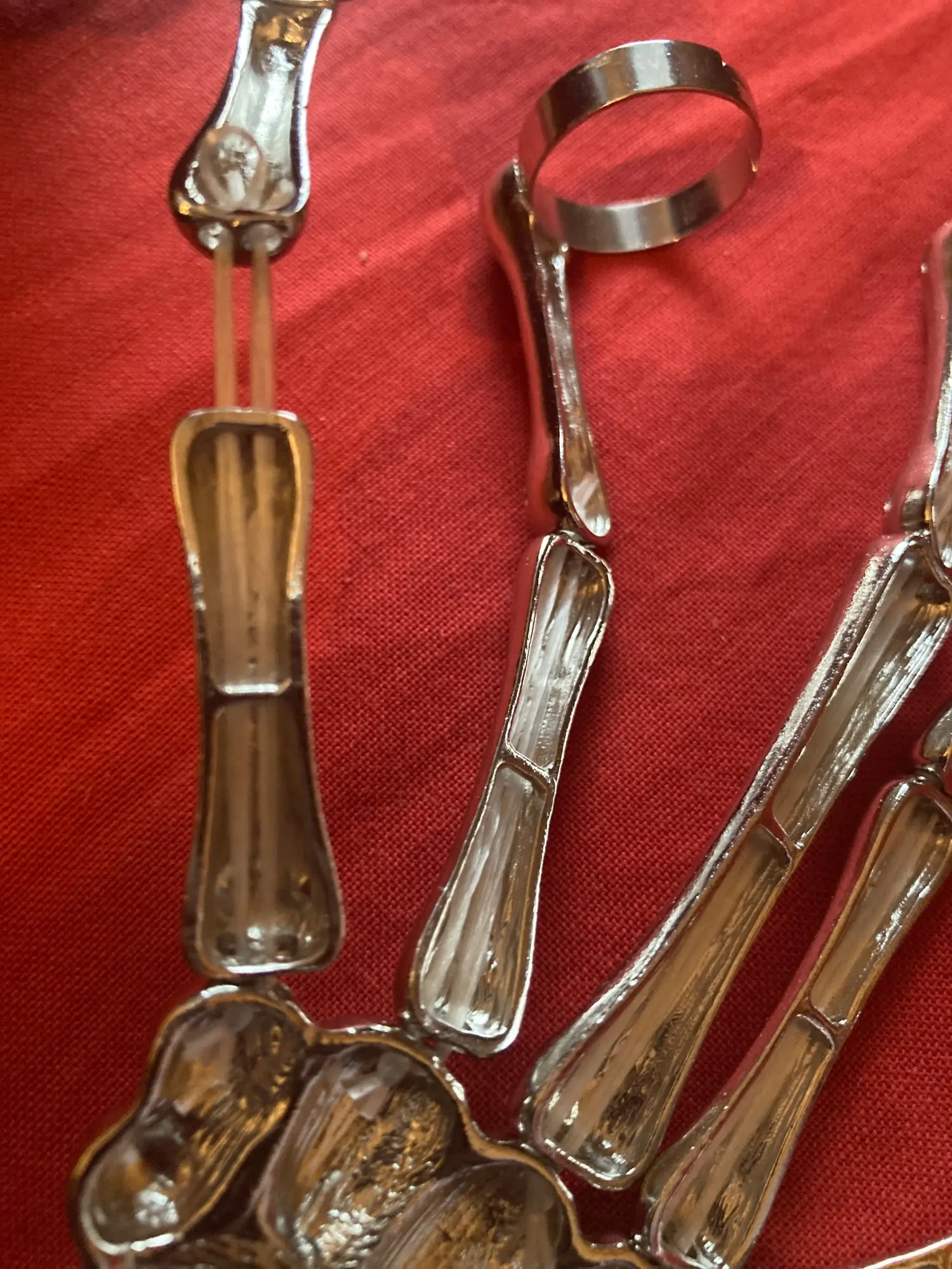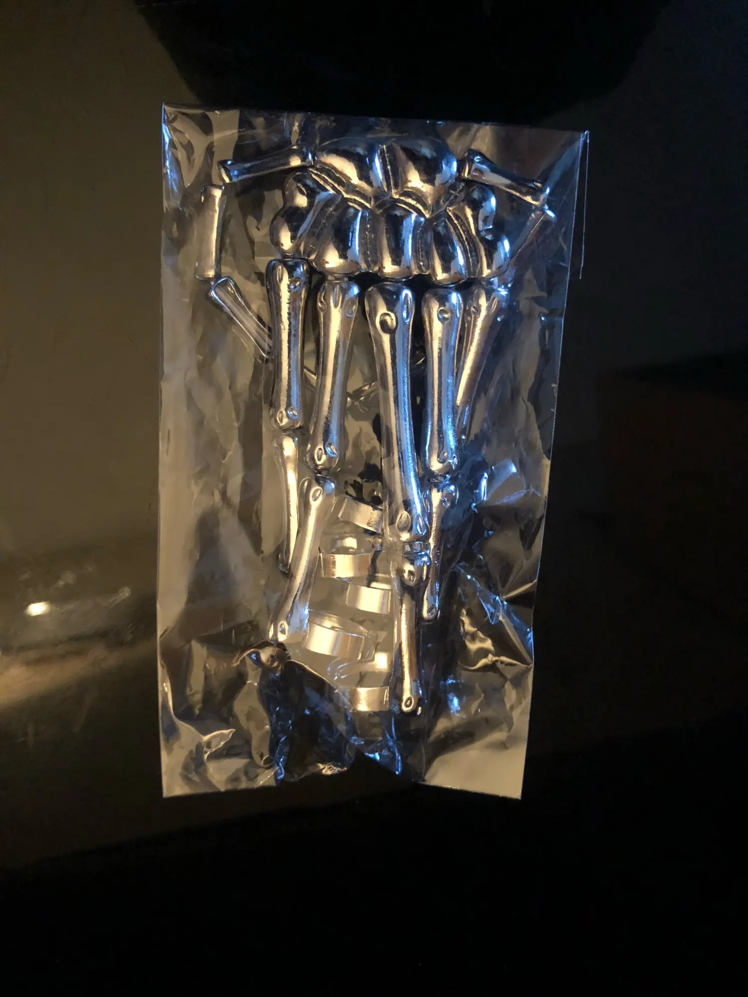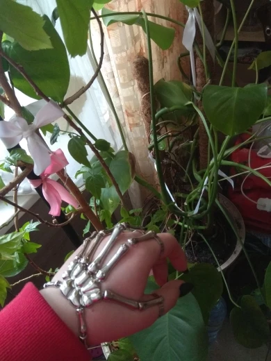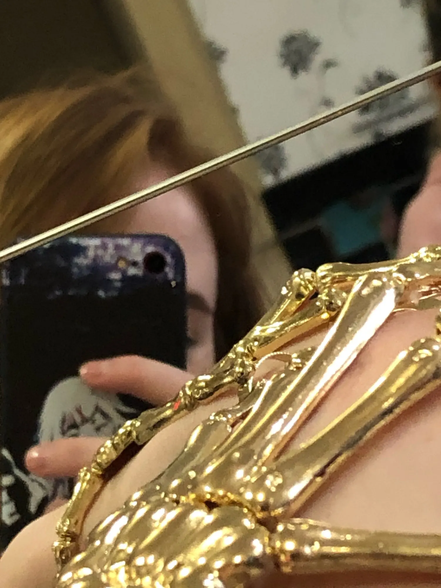 Доча счастлива! Страдает что в школу нельзя такие украшения одевать))) Весь скелет собран на резиночки, одевается несложно. Маловат для ладошки взрослого человека.