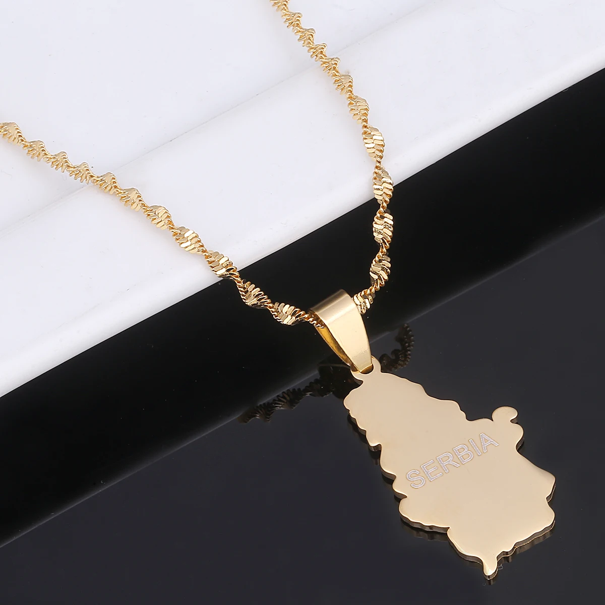 Цепочка с подвеской в виде карты Сербии, из нержавеющей стали