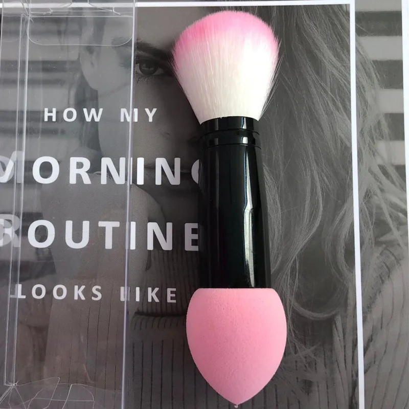 Профессиональная Кисть для румян, нейлоновая Кисть для макияжа, двухголовочный косметический инструмент с губкой, 1 шт.