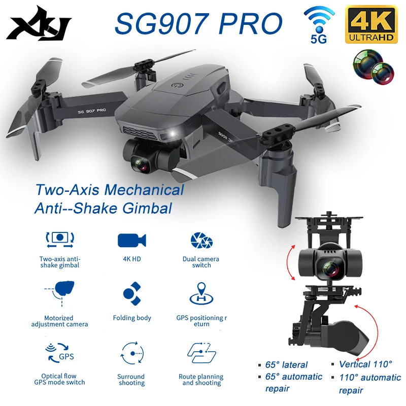 Дрон XKJ SG907Pro, складной Квадрокоптер с GPS и двойной камерой 4 к HD, 2-осевой подвес, 5G Wi-Fi, подарок для игрушек, 2020