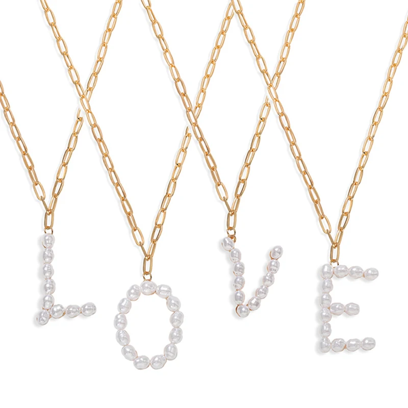 Девушки 26 букв кулон жемчуг женщин высокого качества Мода ювелирные изделия Начальная пресной воды популярное ожерелье Мода горячая распродажа 1 шт