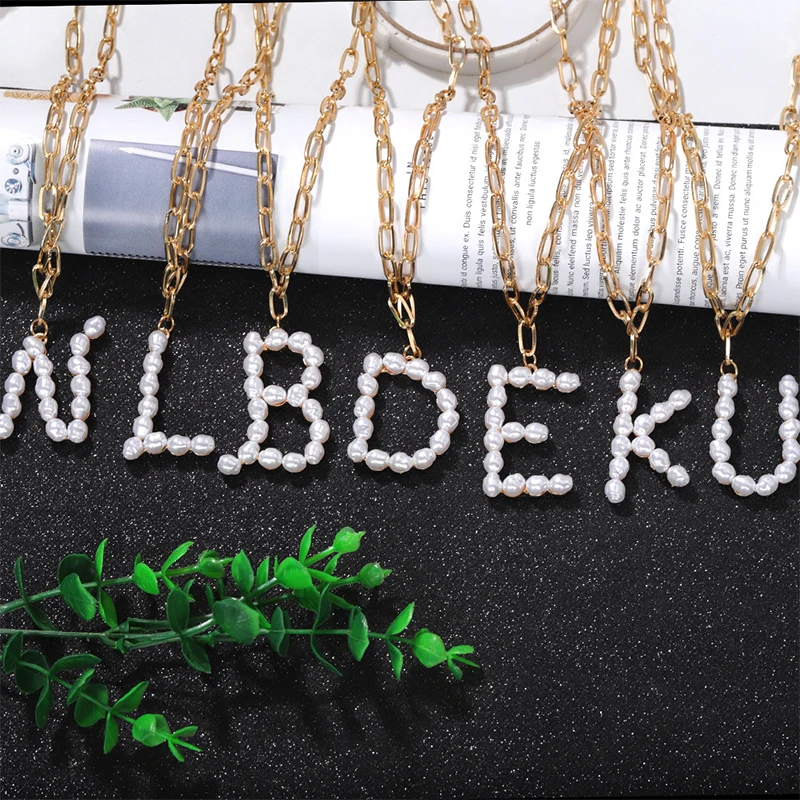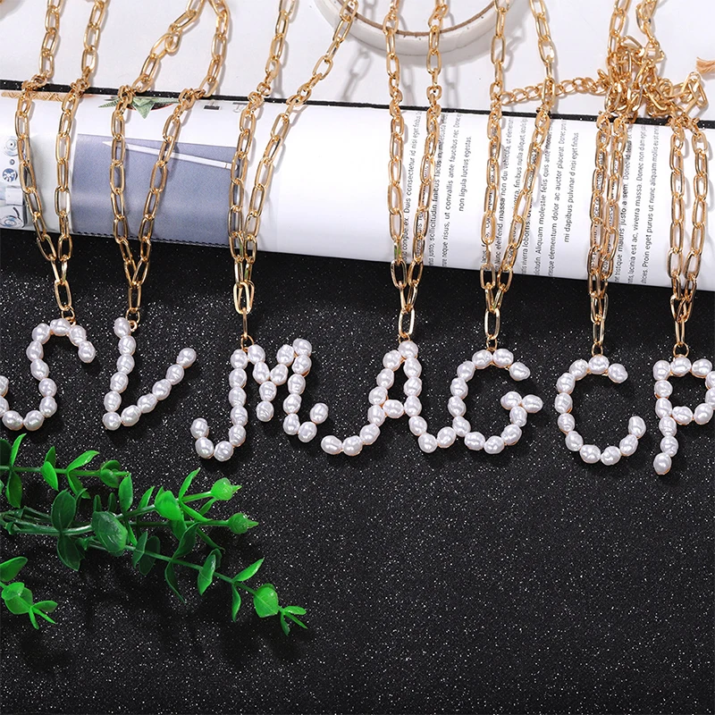 Ожерелье женское, 26 букв, с жемчугом, 1 шт.