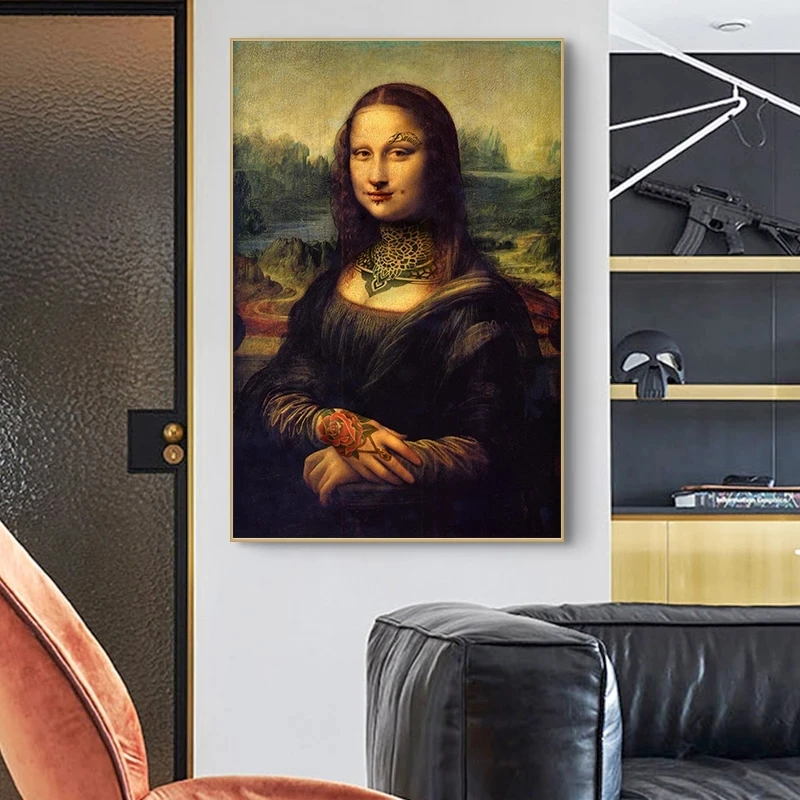 Картина на холсте с изображением знаменитой Моны Лизы, забавное искусство с татуировкой, плохое искусство и принты, Настенная картина для гостиной, украшение для дома