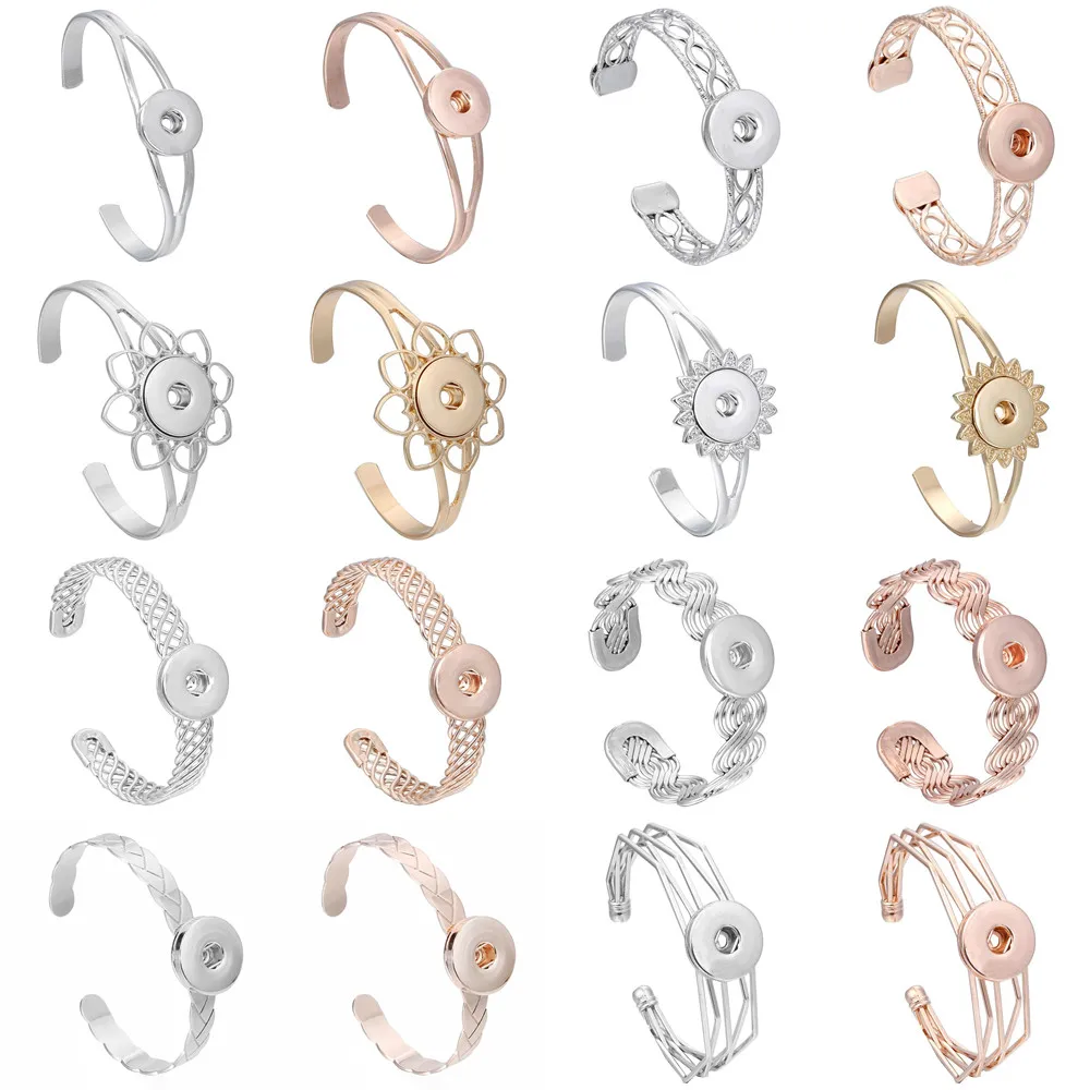 Новые ювелирные браслеты с защелкой серебро Цвет из золотистого металла 18 мм кнопки браслеты на запястье регулируемые кнопки браслет на запястье