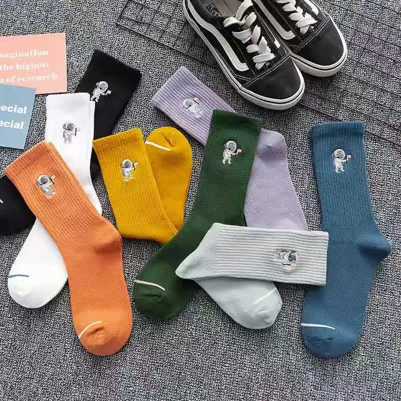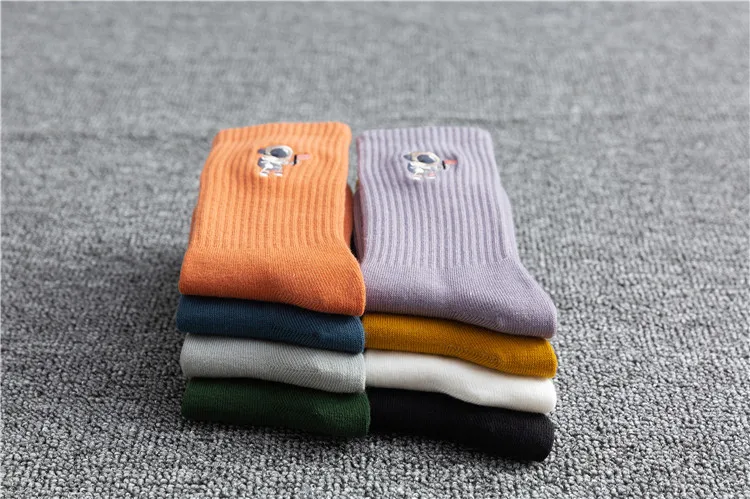 1 пара осень-зима однотонные Цвет Ins хлопковые носки с вышитыми космонавтами из мультфильма длинные носки креативные милые уличные спортивные носки для мужчин