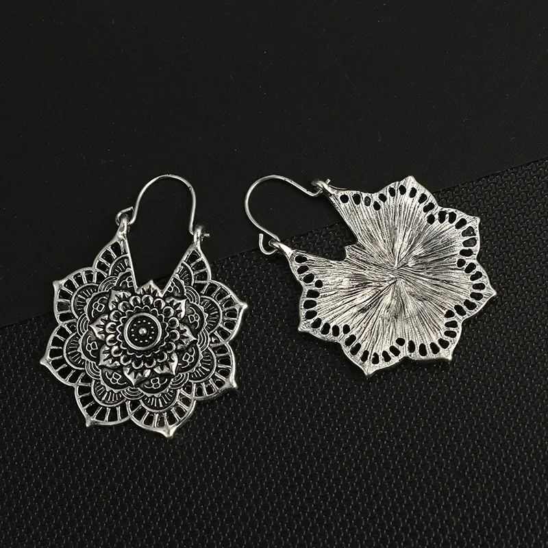 Винтажные серьги-подвески в этническом стиле из цинкового сплава в стиле бохо, женские серьги с гравировкой цветка мандалы, большие металлические подвесные серьги, женская бижутерия Вечерние