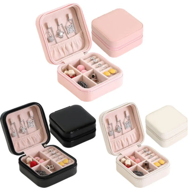 Портативная кожаная шкатулка для хранения ювелирных изделий, серег, колец, ожерелий, чехлов, упаковка для драгоценностей, дорожный органайзер для косметики, коробка-контейнер