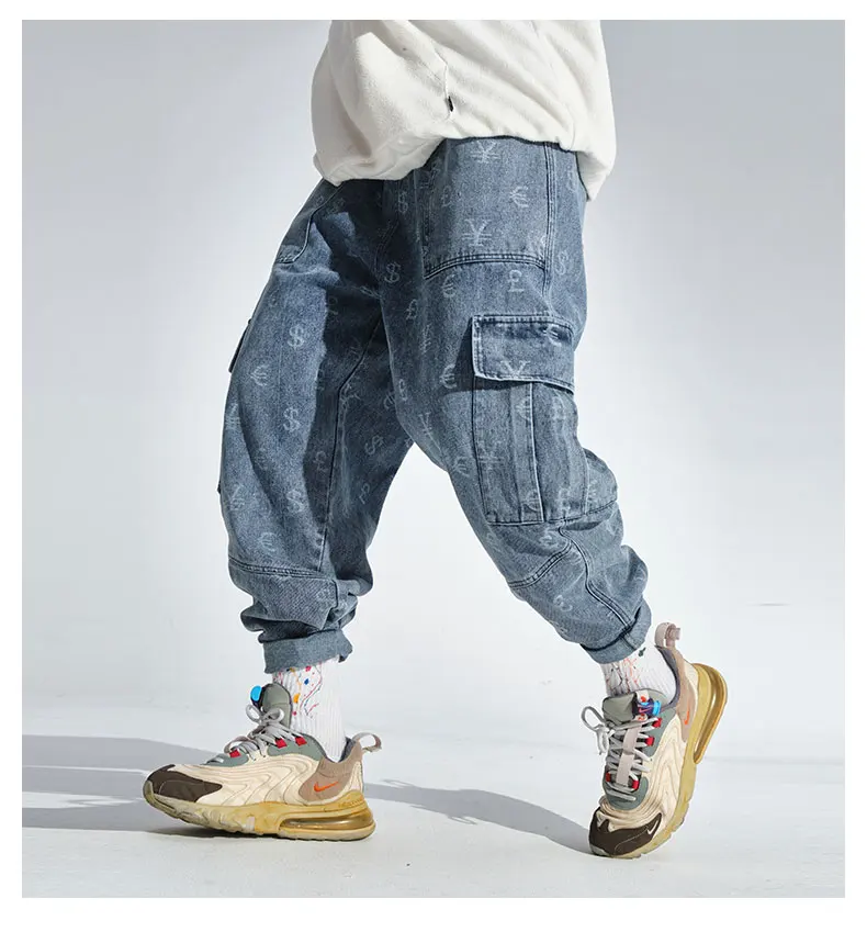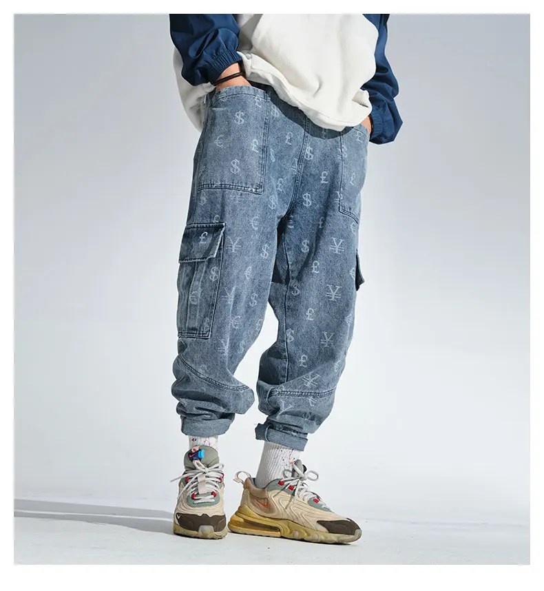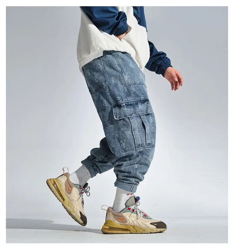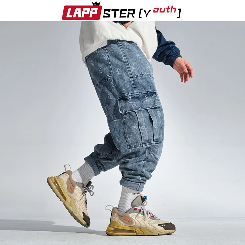 Брюки LAPPSTER мужские джинсовые с принтом, модные джоггеры с карманами, джинсовые брюки в стиле хип-хоп, цвет голубой, 2022