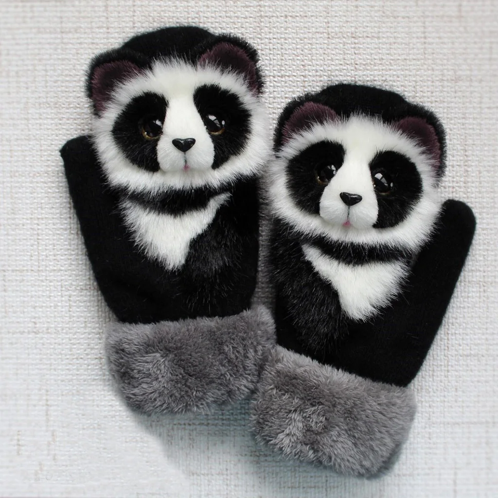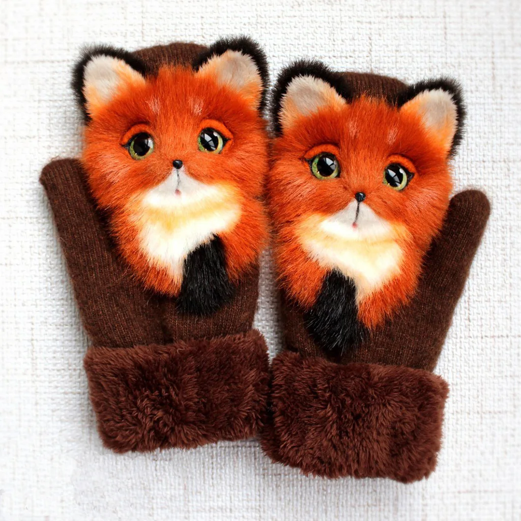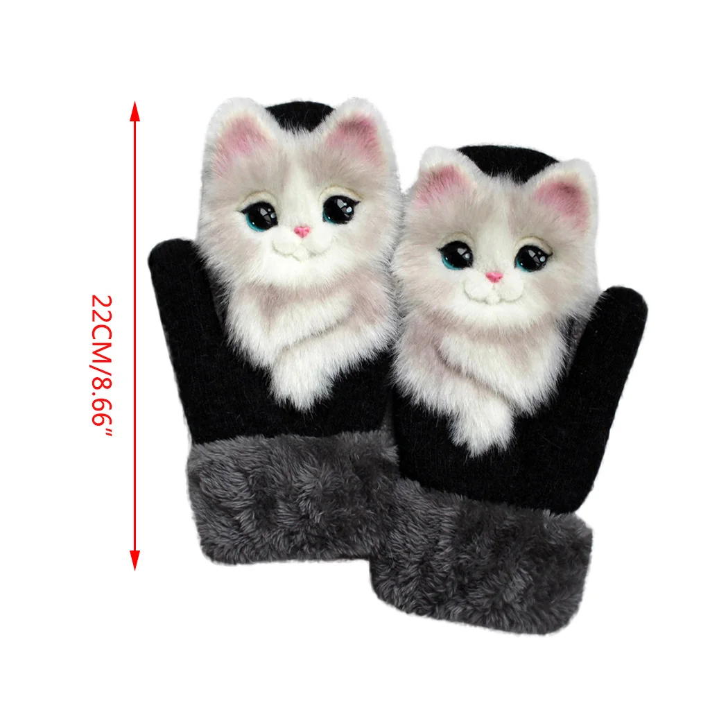 Зимние вязаные перчатки для мужчин и женщин, милые объемные пушистые декоративные Мультяшные животные, утепленные плюшевые подкладки, ветрозащитные теплые варежки