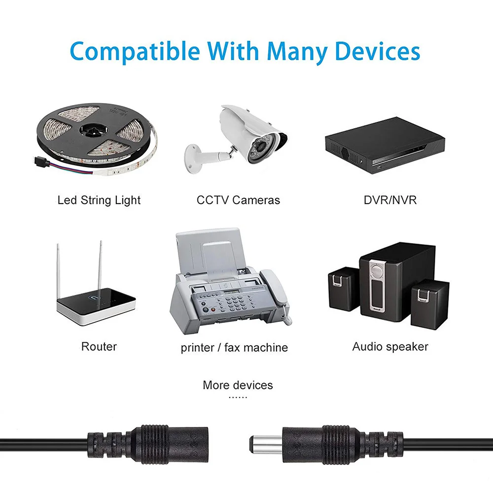 4. Штепсельная Вилка постоянного тока к женскому удлинительному кабелю с использованием различных адаптеров питания напряжения и тока, широко используемых в камерах наблюдения, светодиодный светильник полосы и другие с низким напряжением постоянного тока электрическое оборудование и любые другие 5,5 мм x 2,1 мм кабель питания.