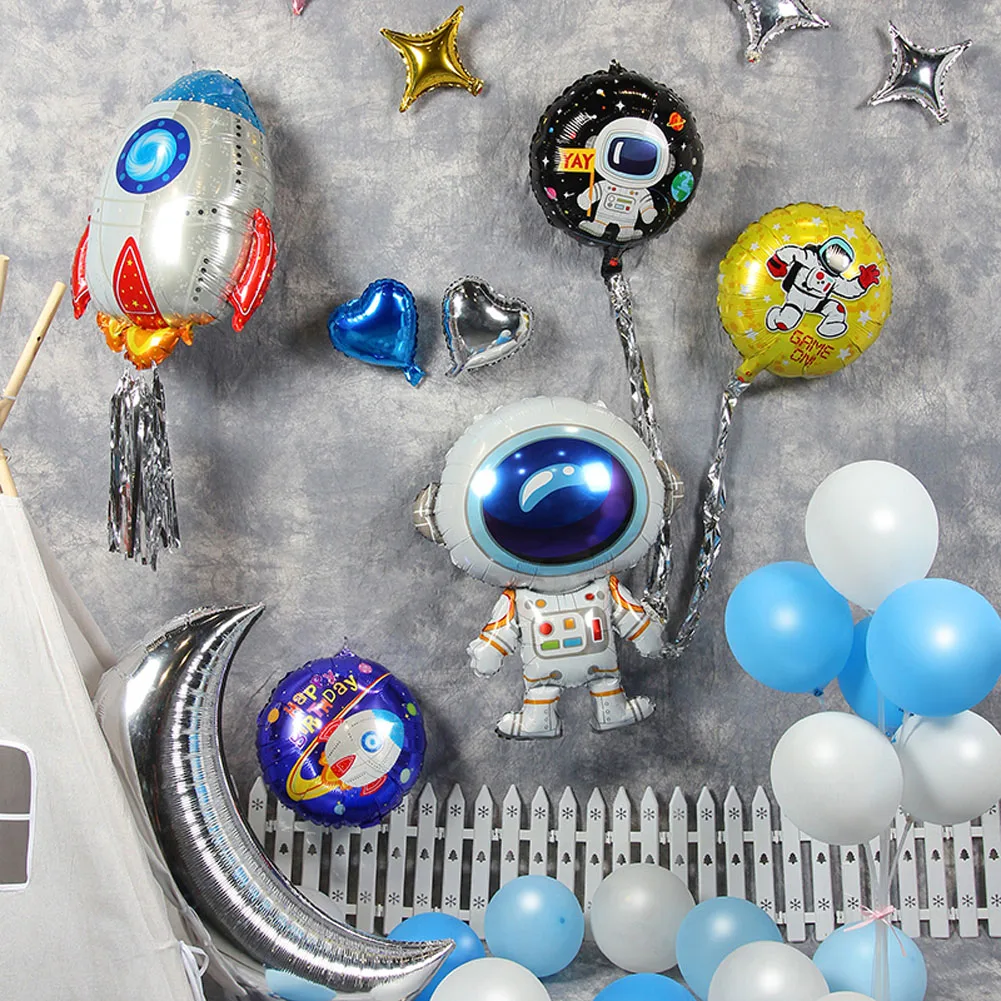 Воздушные шары космонавта для космической вечеринки, 1 шт., воздушные шары из фольги с ракетой, галактика, тематическая вечеринка для мальчиков, детский Декор на день рождения, гелиевые шары