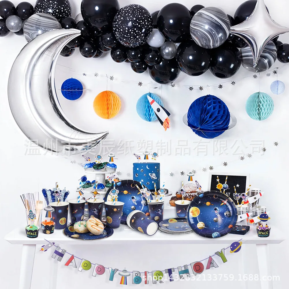 Набор воздушных шаров в космическом стиле, одноразовая посуда в вид...