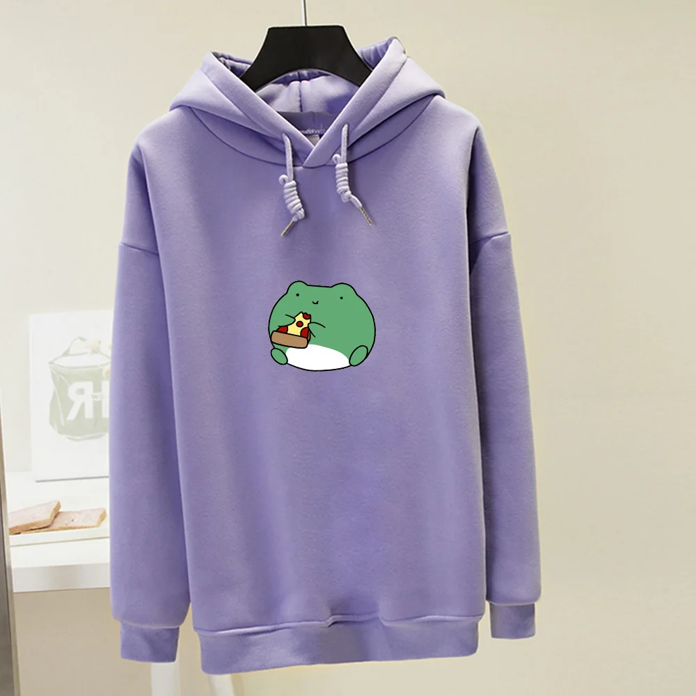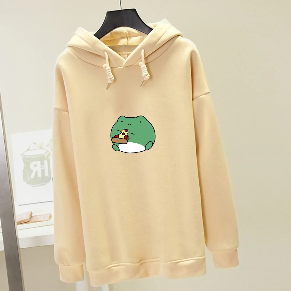 Толстовка в стиле Харадзюку с принтом лягушки, толстовка большого размера для лучшего друга, повседневные милые толстовки для женщин, топы, осенне-зимние теплые толстовки для женщин