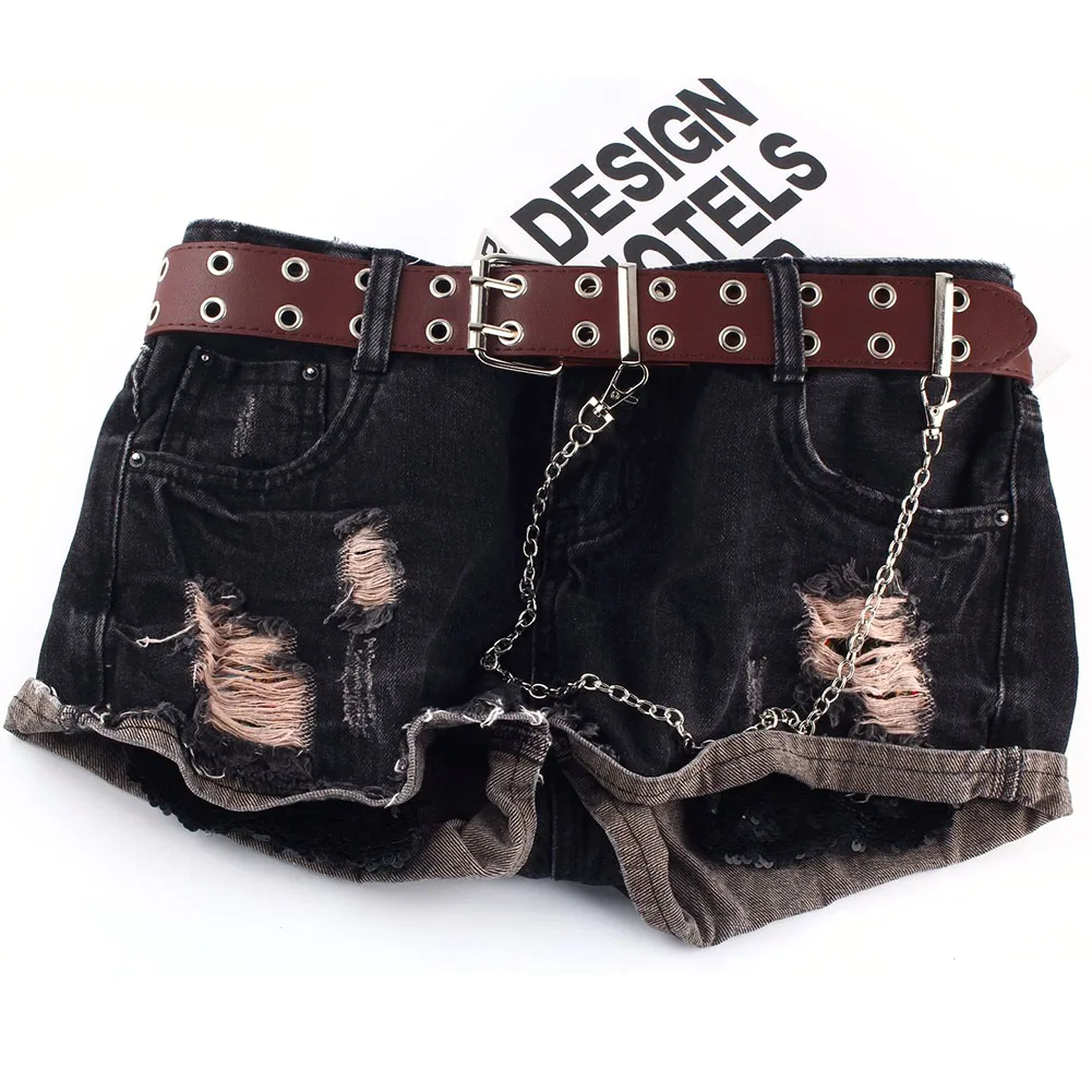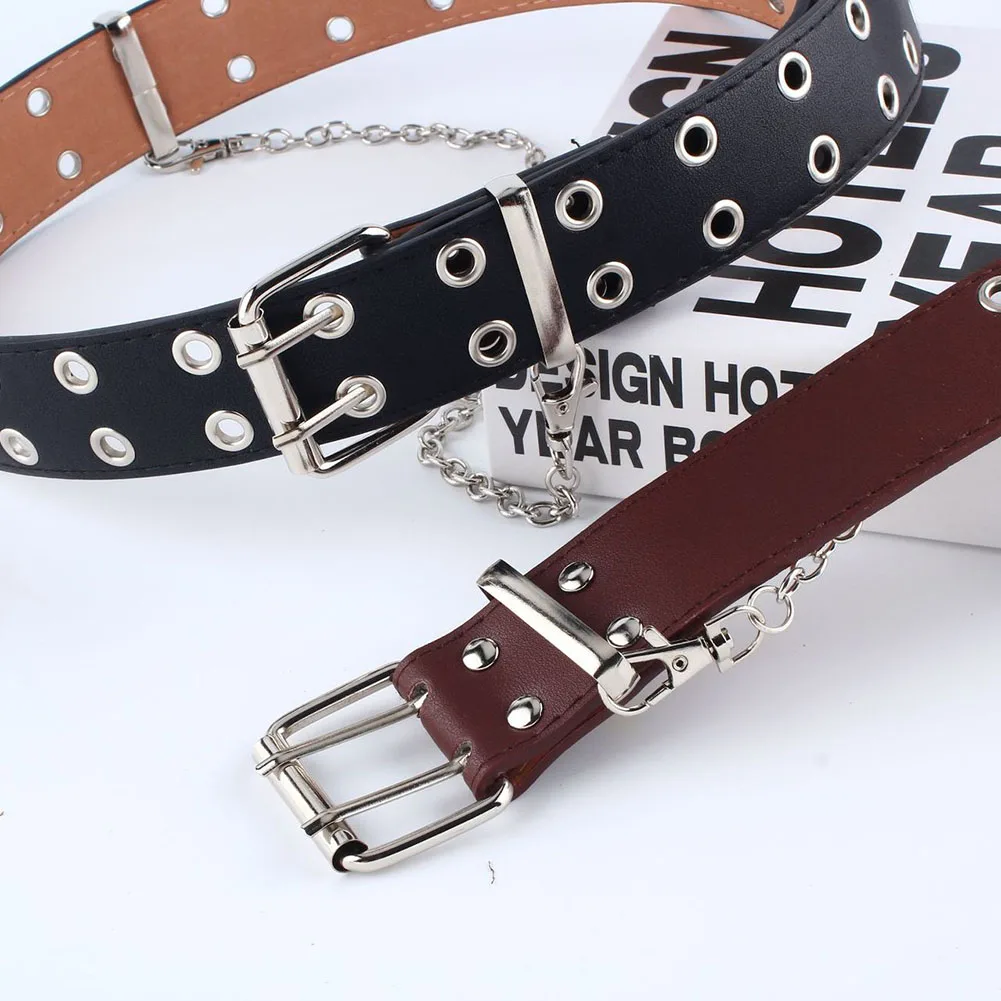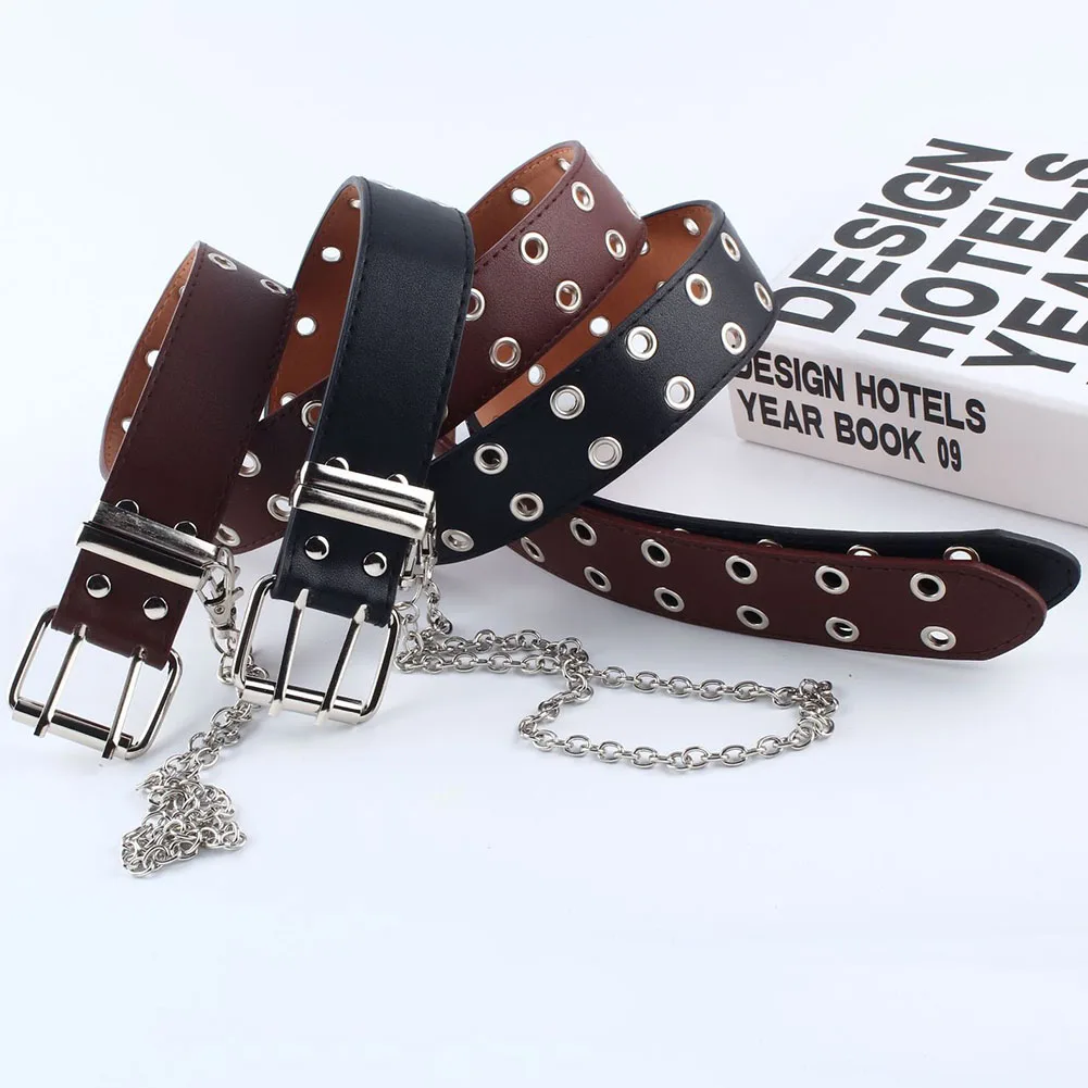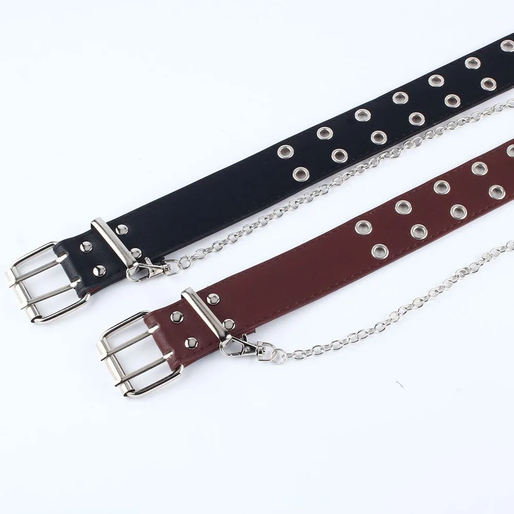 Женский ремень с цепочкой в стиле панк, регулируемый ремень с двойнымоднорядным отверстием, декоративный ремень с цепочкой с отверстиями, новинка 2020