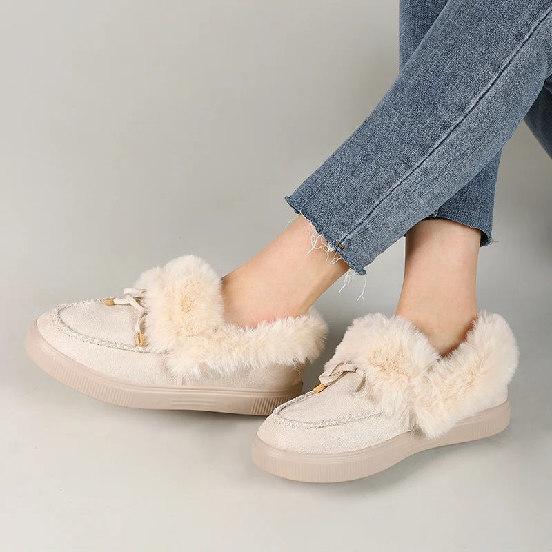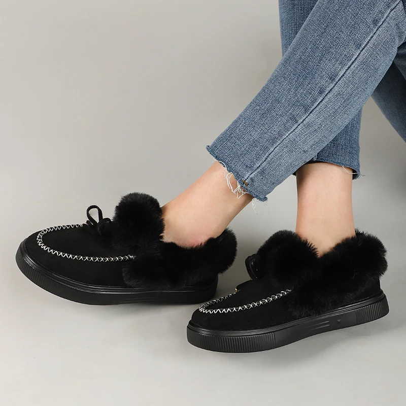Женские зимние ботинки, зимние теплые плюшевые ботинки на толстой платформе, женские меховые ботинки на плоской подошве, удобные женские ботинки из флока без застежек