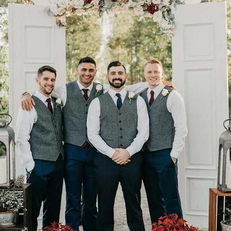 Серый жениха вязаные жилеты для женщин елочка твид жилет жениха Slim Fit Мужская одежда наряд костюм без рукавов для выпускного вечера Свадебная вечеринка жилет