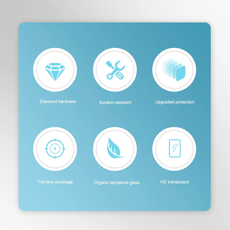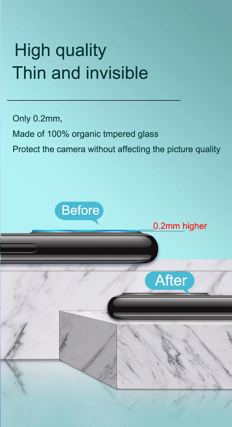 Только 0,2 мм изготовлено из 100% органического закаленного стекла, защищает камеру, не влияя на качество изображения