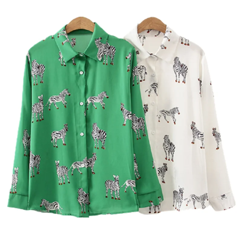 Блузка Женская Офисная с длинным рукавом, модная рубашка с отложным воротником и принтом зебры, элегантная повседневная свободная уличная одежда, белый зеленый топ, весна-осень