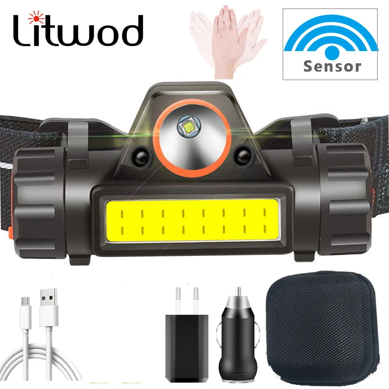 Сенсор XP-G Q5 налобный фонарь Водонепроницаемый 2500lm Cob Led Встроенный Usb Перезаряжаемый 18650 аккумулятор рабочий свет 5w