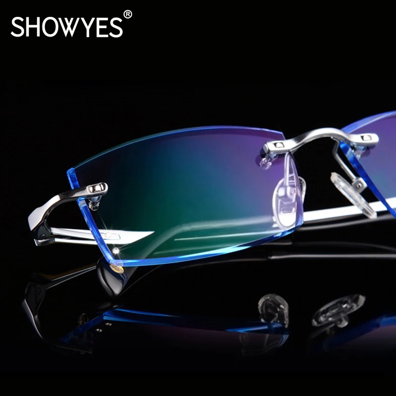 Новый Бизнес Для мужчин Роскошные без оправы Титан очки для чтения Бескаркасный Серебряная небесно-голубого цвета, стразы Алмазная резка без оправы Ti