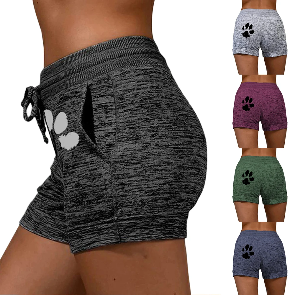 Шорты женские быстросохнущие с завязкой, хлопок, с принтом кошачьей лапы, с завышенной талией, эластичные, пляжные повседневные спортивные, на лето