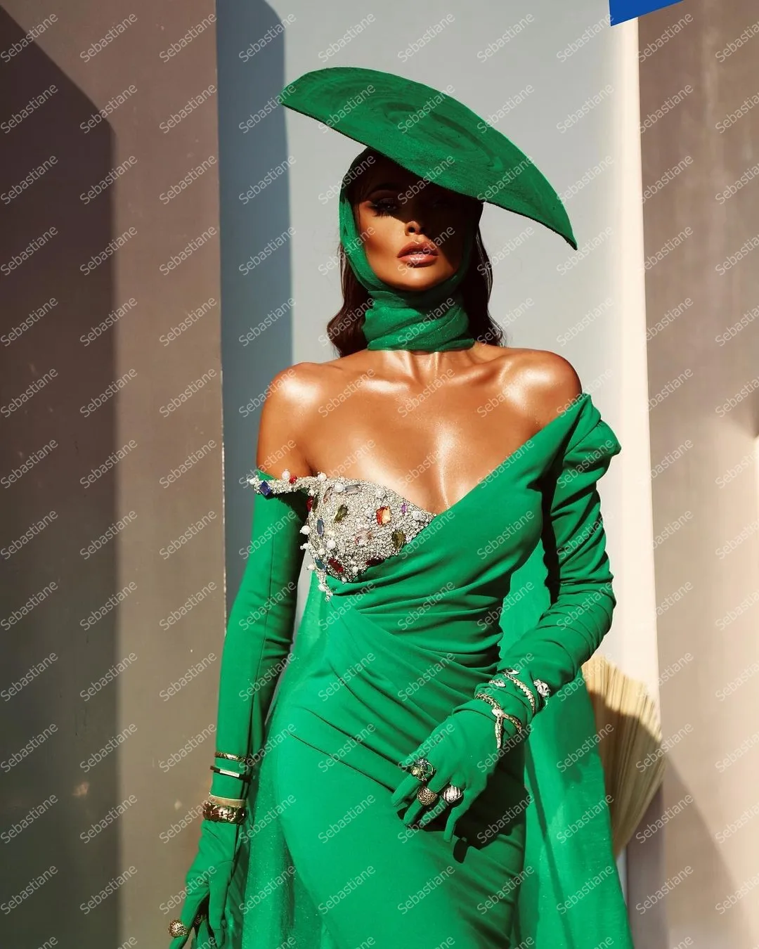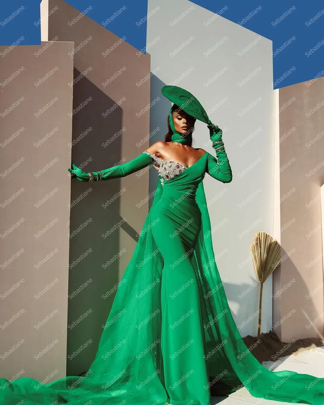 Женское вечернее платье-русалка, зеленое платье без рукавов, с лямк...
