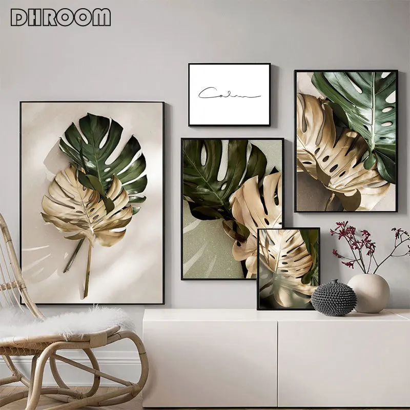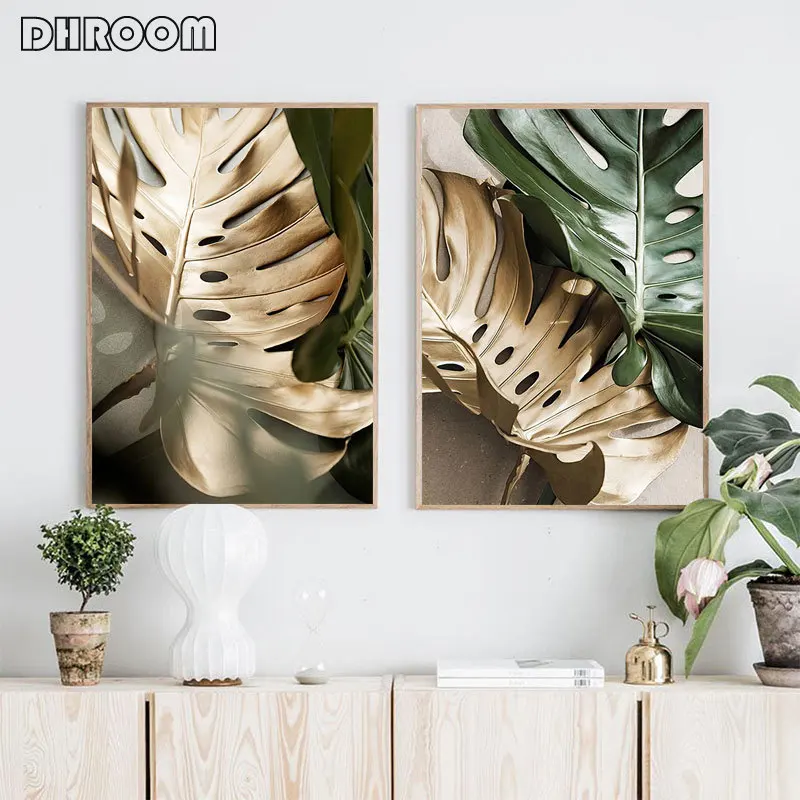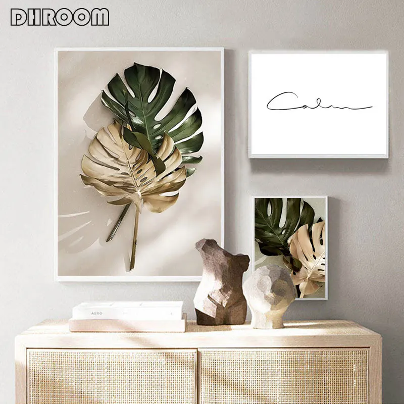 Картина на холсте с изображением золотых пальмовых листьев, ботанические скандинавские настенные художественные плакаты, скандинавские украшения, картина для декора гостиной