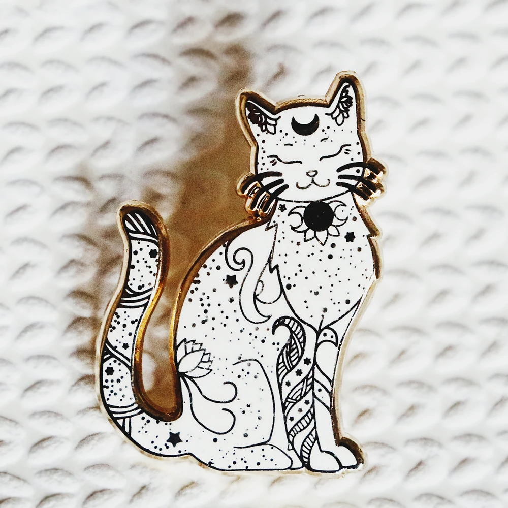 Жесткая эмалированная булавка Artemis с изображением богини луны, модные золотые булавки в форме звезды, Милая брошь с мультяшными животными, кошкой, медалью моряка-моряка