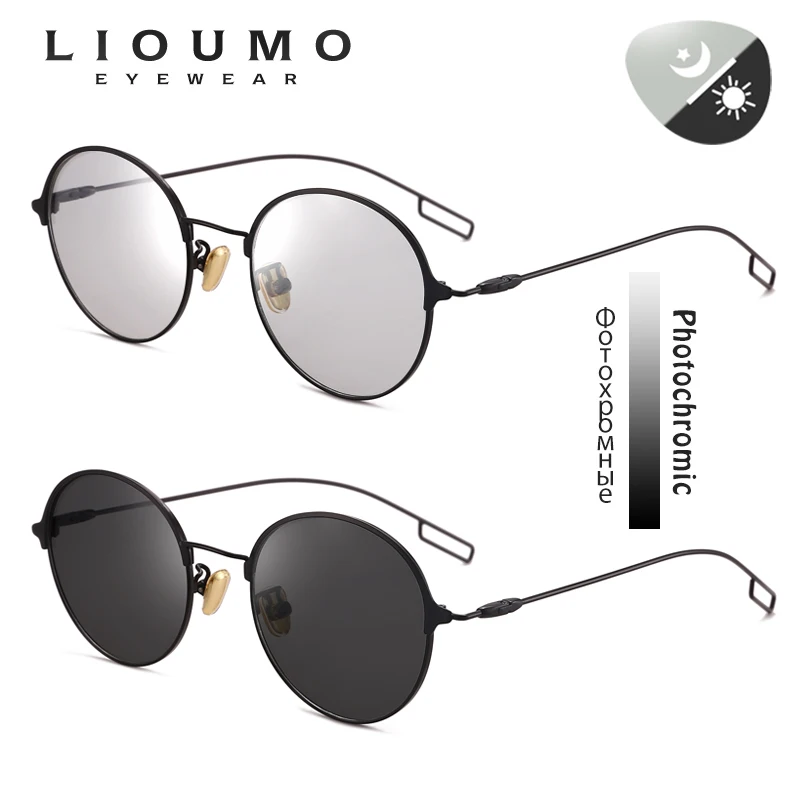 Очки солнцезащитные LIOUMO поляризационные для мужчин и женщин, модные круглые фотохромные солнечные очки для вождения, винтажные очки