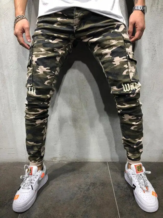Мужские обтягивающие Стрейчевые джинсовые брюки-карандаш, камуфляжные плиссированные облегающие джинсовые брюки в полоску, брюки-карго, Мужская одежда, лидер продаж