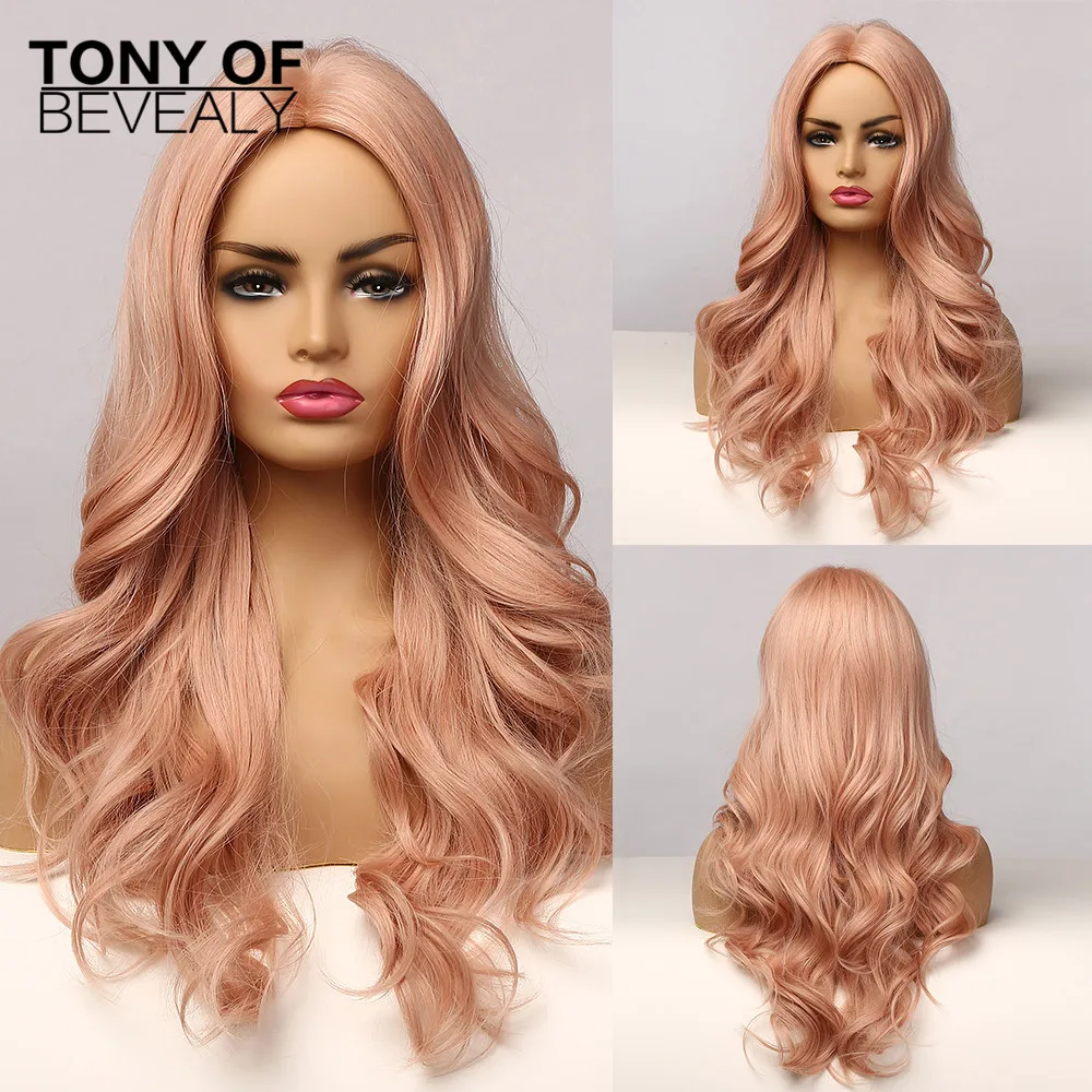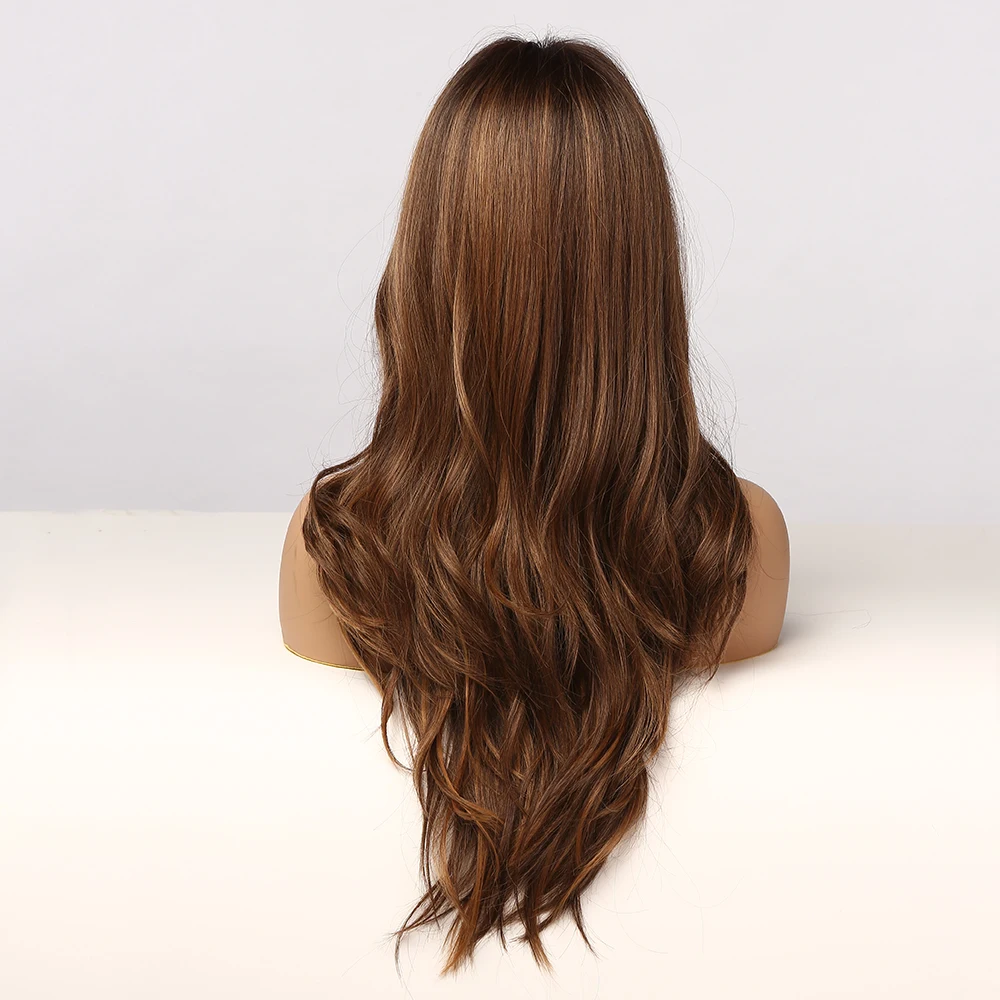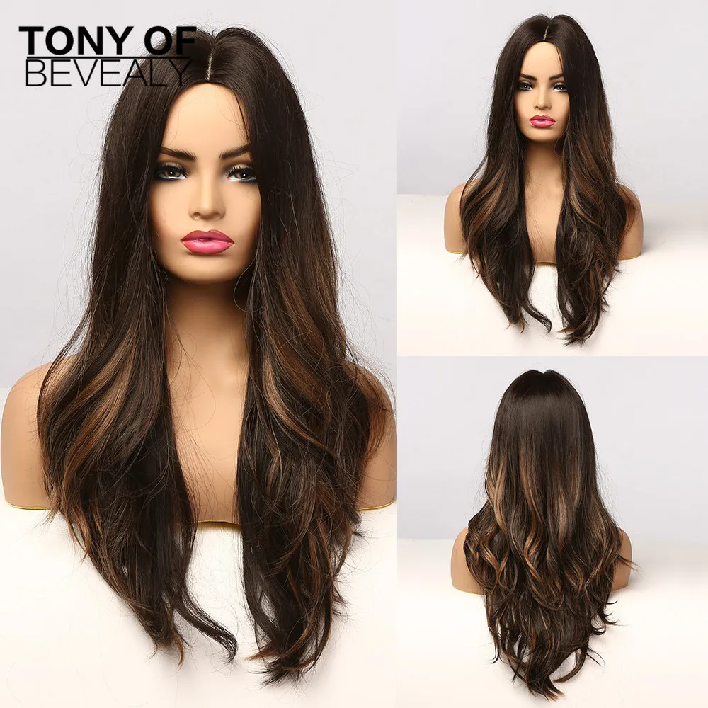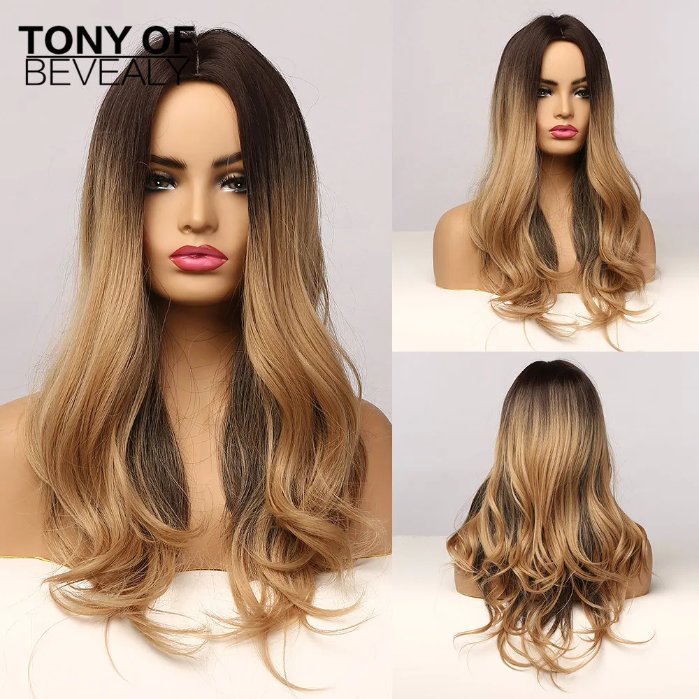 Длинные волнистые парики с эффектом омбре, парики из черных и коричневых синтетических волос, парики средней длины, натуральные волнистые термостойкие парики для косплея для женщин