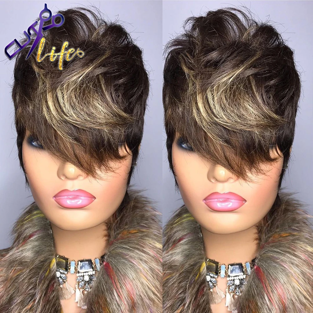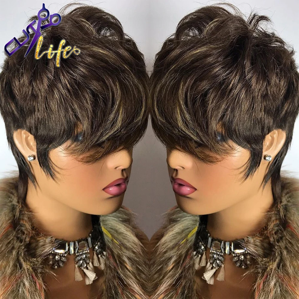 Короткие Волнистые парики из человеческих волос с челкой для черных женщин, бразильские натуральные неповрежденные волосы