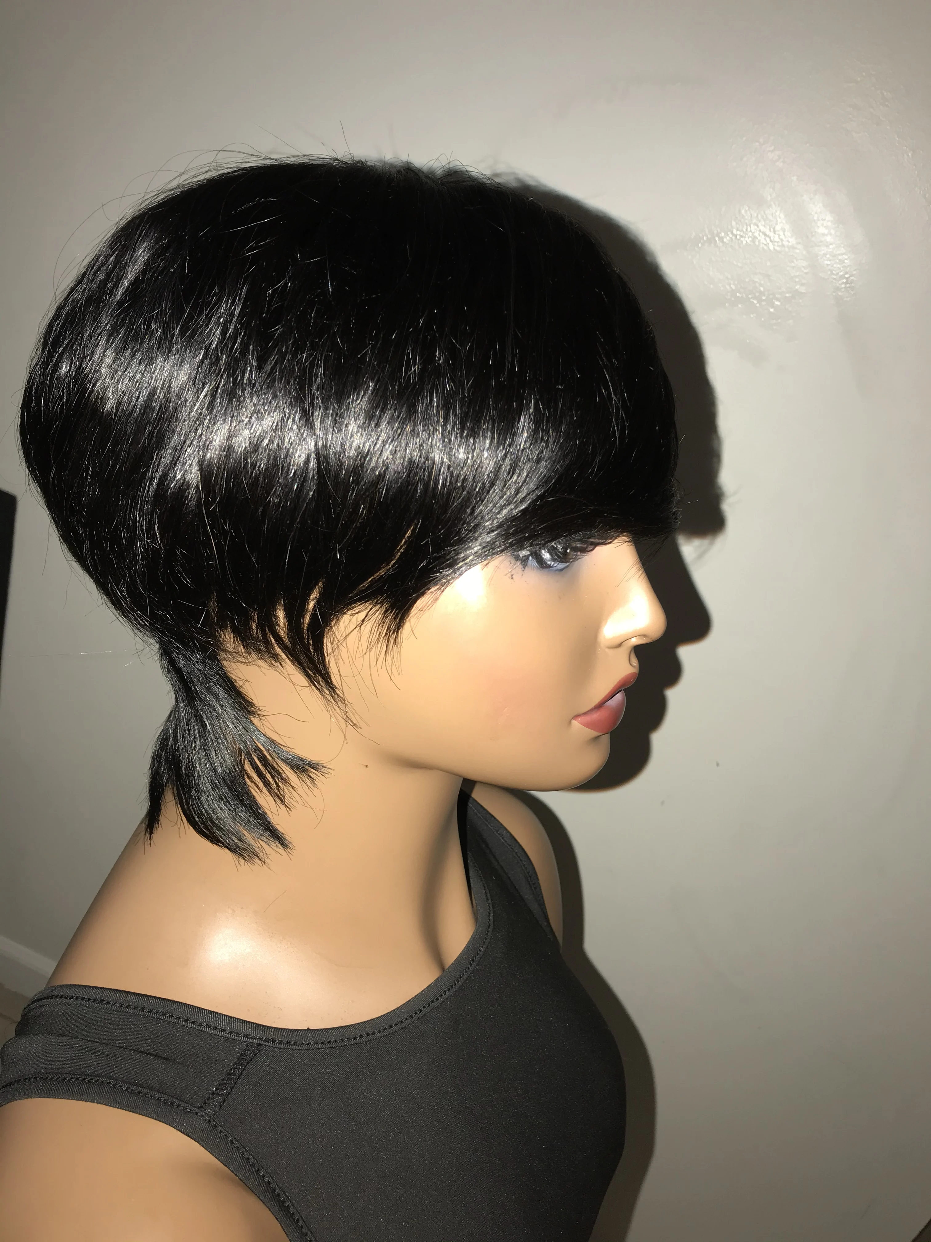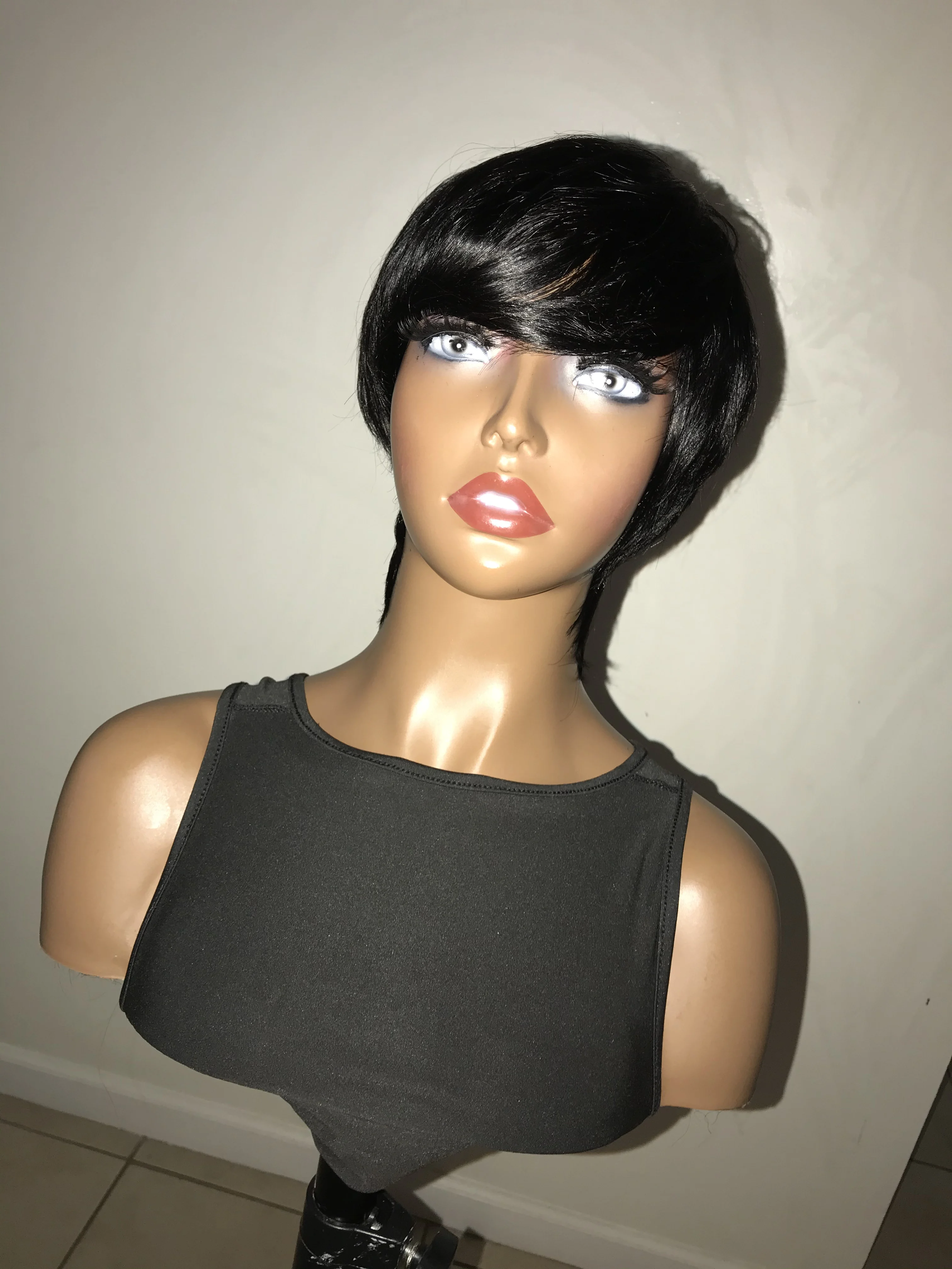 Парик с короткой стрижкой Пикси, волнистые волосы, перуанские человеческие волосы Remy для женщин, полноразмерный парик черного цвета, быстрая доставка