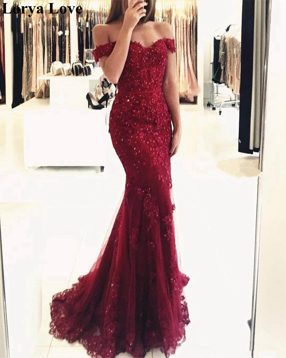 Женское вечернее платье с юбкой-годе, винно-Красное длинное платье синего цвета с открытыми плечами для выпускного вечера, 2022