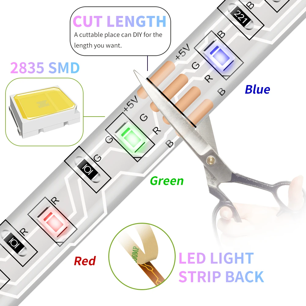 USB-лента для подсветильник Ки, 5 В, RGB 2835 SMD, 0,5, 1, 2, 3, 4, 5 м