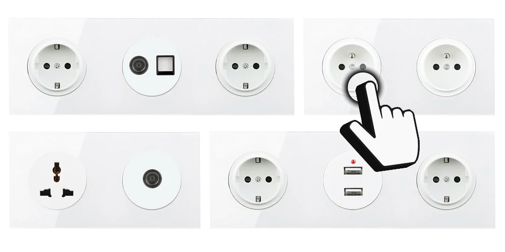 Белая Хрустальная стеклянная панель, двойная розетка, розетка для гостиной, европейская розетка, одиночнаядвойнаяТройнаячетырехместная настенная розетка