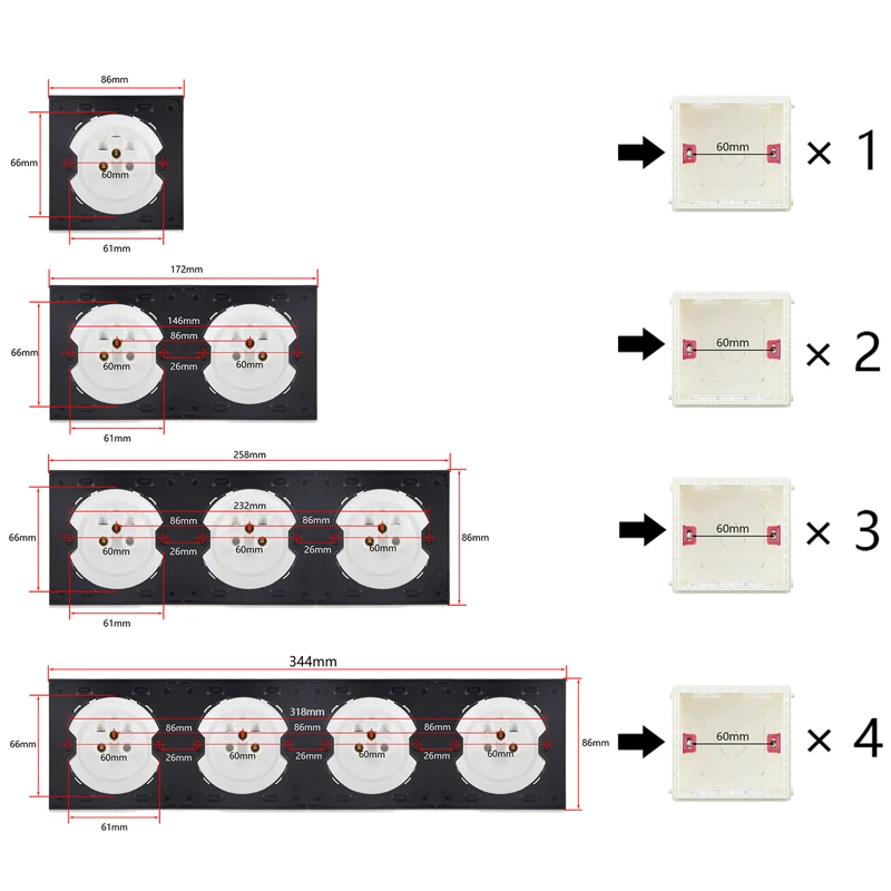 Этот продукт не может быть установлен в круговую установочную коробку, пожалуйста, внимательно выберите нужный товар перед покупкой. Вы также можете купить соответствующую квадратную монтажную коробку 86 типа в нашем магазине.