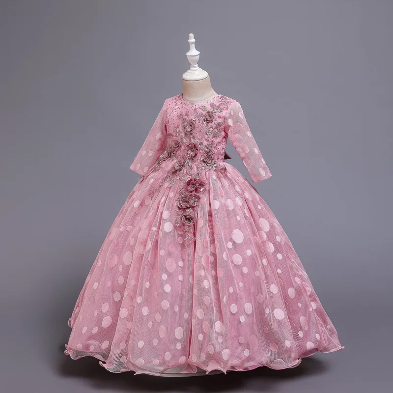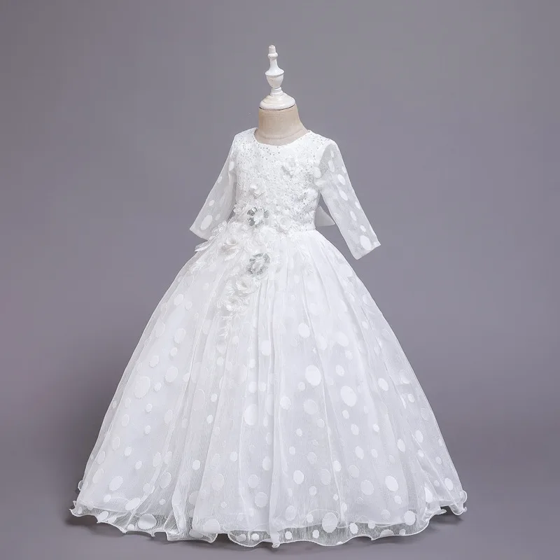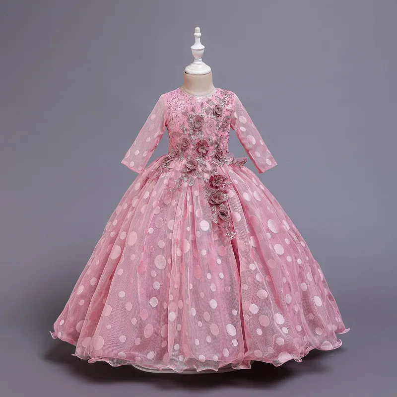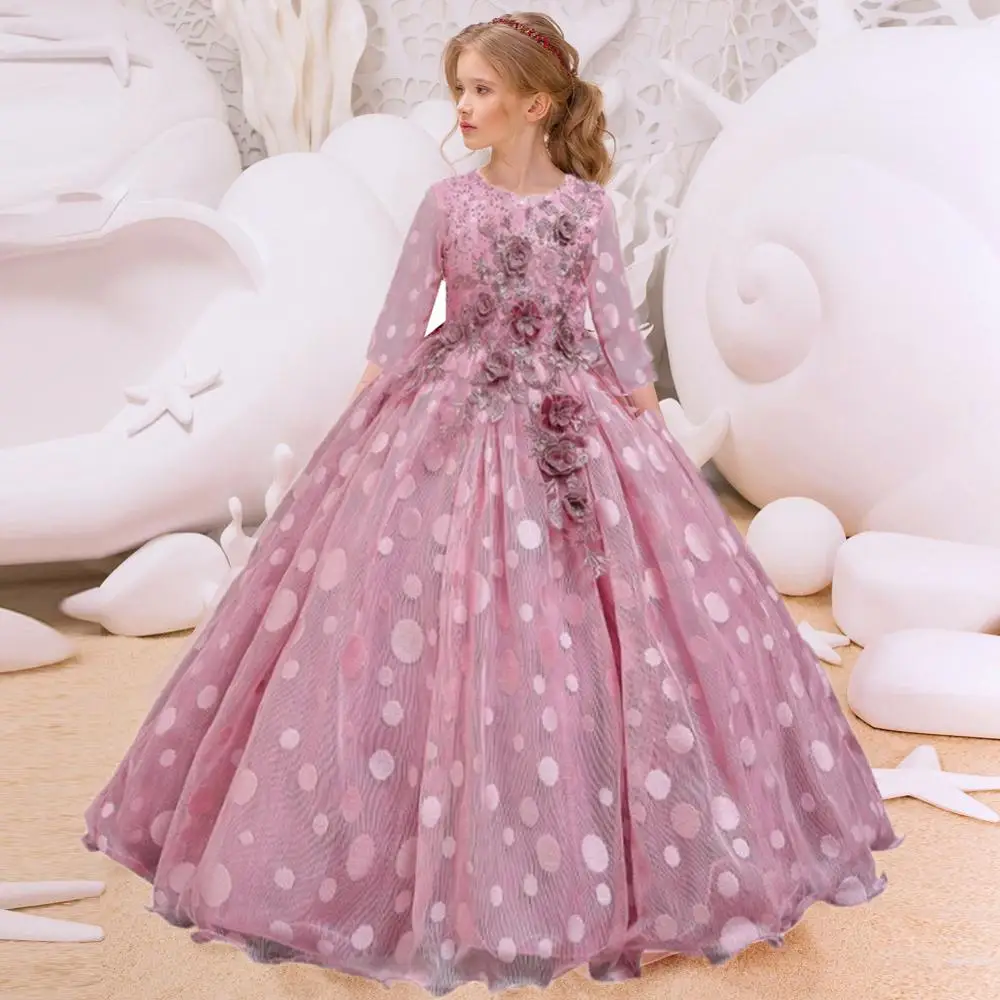 Элегантное платье принцессы для девочек с кружевным рукавом и цветами платья для подружки невесты платье для подростков на свадьбу вечерние бальное платье детская одежда