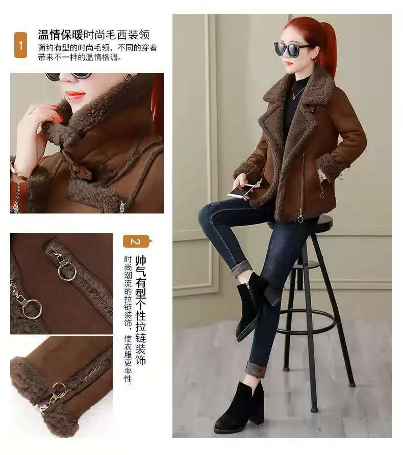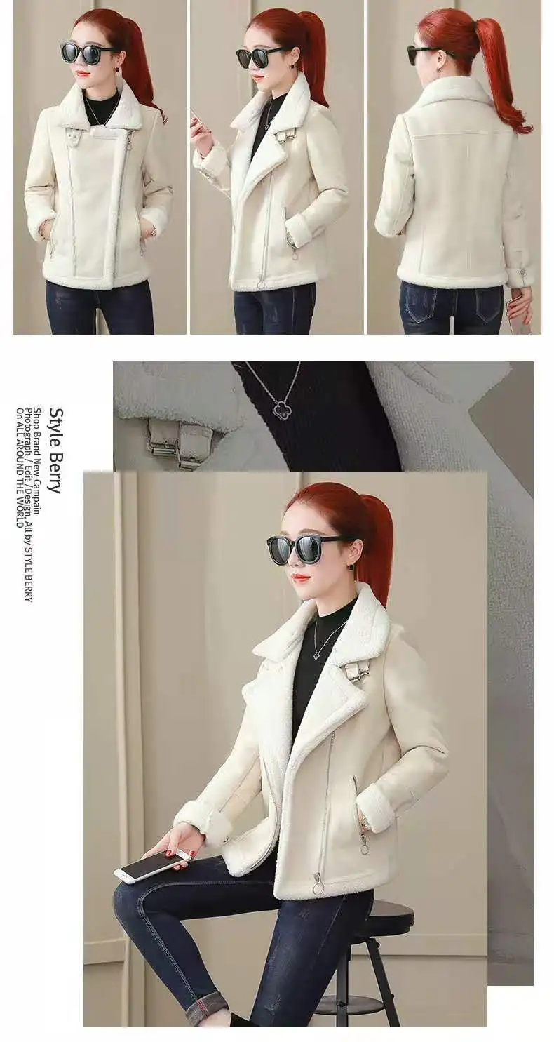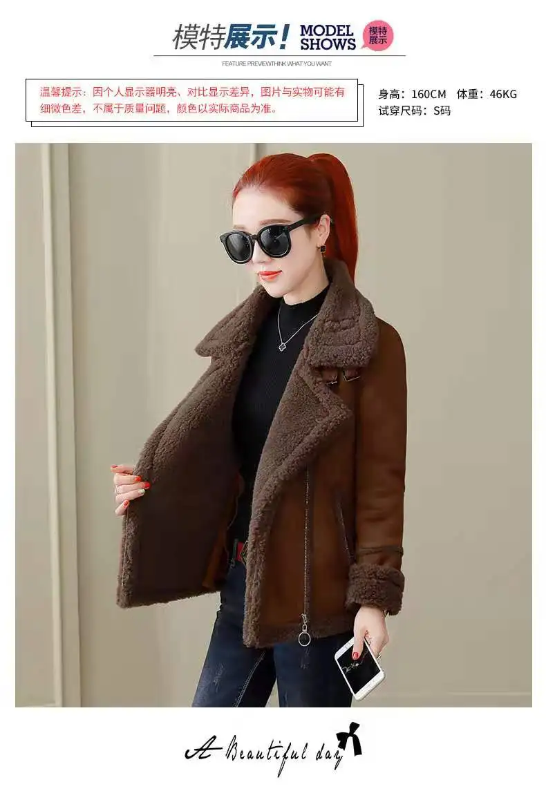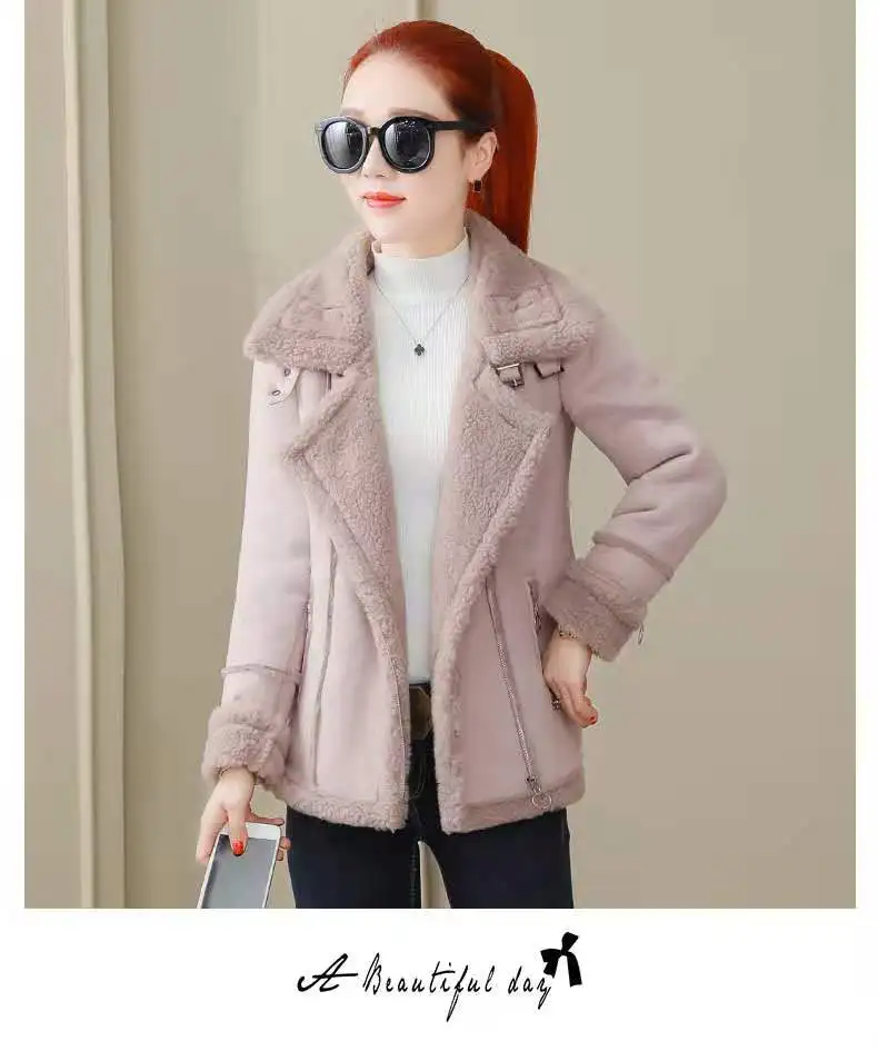 Женская утепленная куртка из овечьей шкуры, зимняя утепленная байкерская куртка из овечьей шерсти в Корейском стиле, 2020