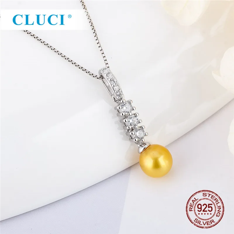 CLUCI Аутентичные 925 стерлингового серебра CZ жемчужное ожерелье с кулоном, установка подходит для 6-7 мм круглые бусины DIY для женщин, хорошее ювелирное изделие, делая SP447SB