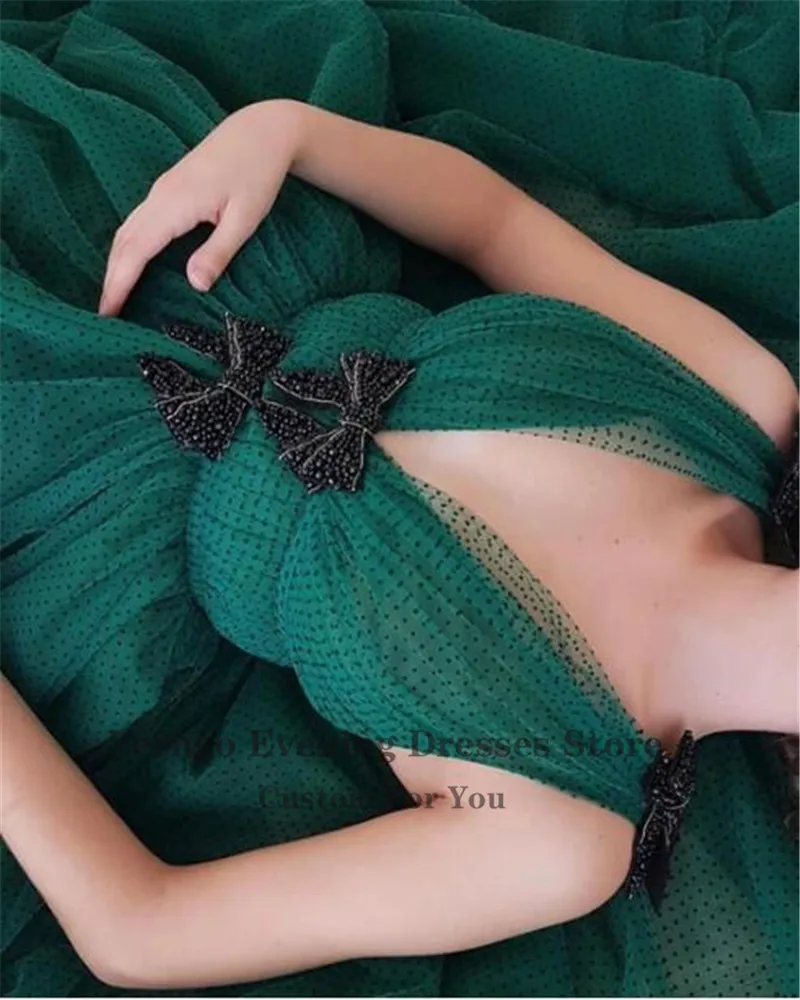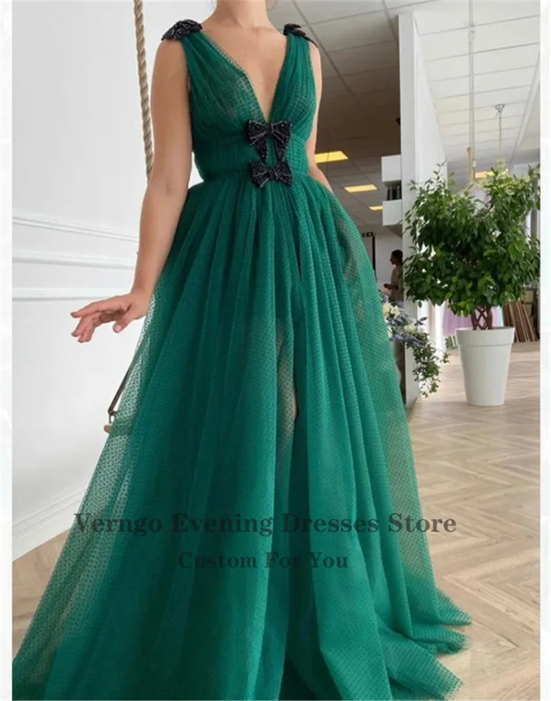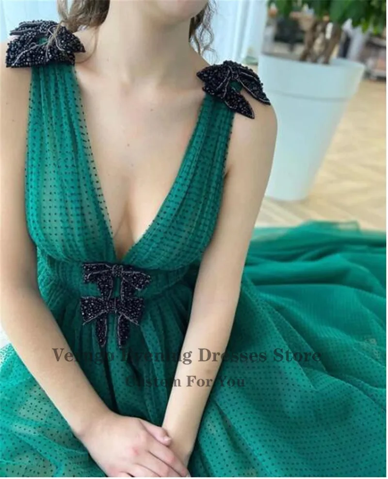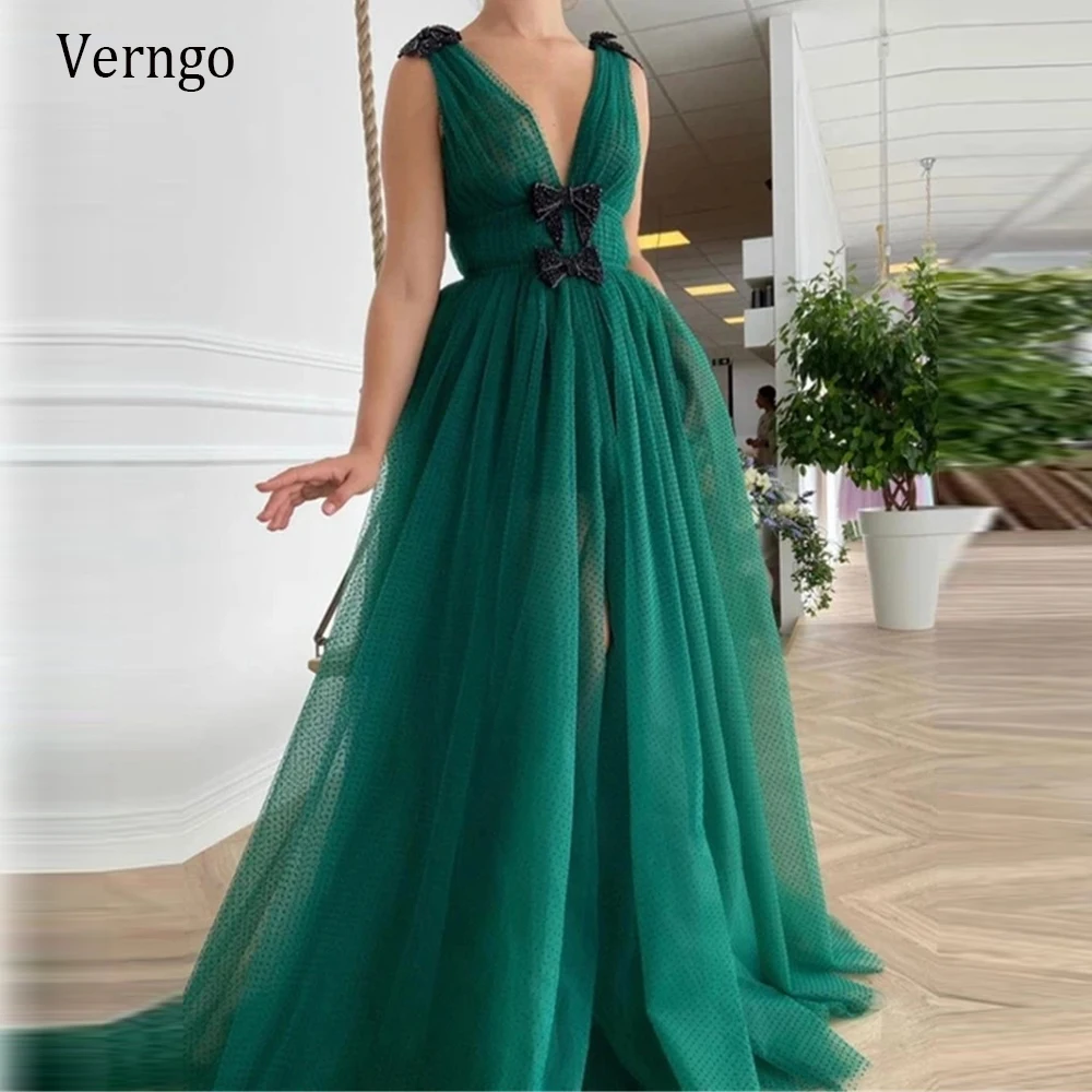 Зеленое Тюлевое длинное платье для выпускного вечера Verngo, ТРАПЕЦИЕВИДНОЕ вечернее платье с V-образным вырезом и черным бантом, бальное платье со шлейфом, 2021