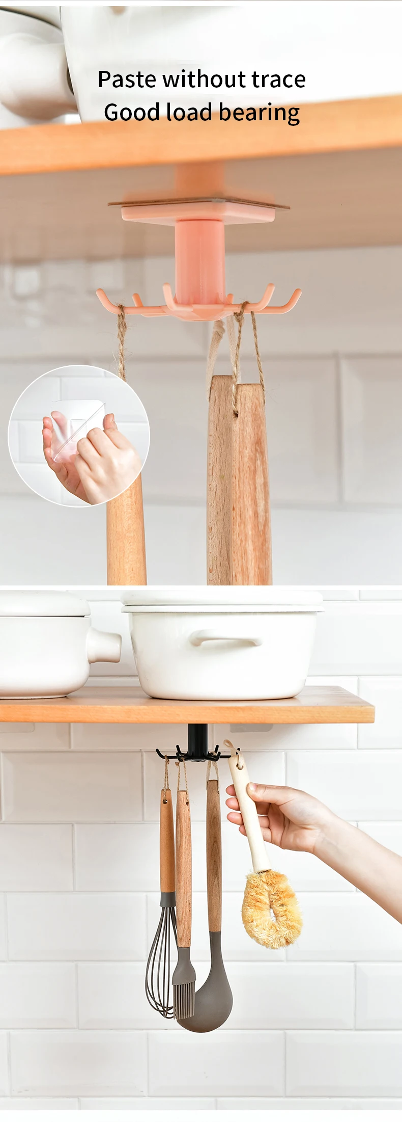 Поворотный кухонный шкаф для хранения, подвесной крючок для полки, самоклеящиеся крючки, настенный крючок для ванной комнаты, Кухонное хранение, домашние аксессуары
