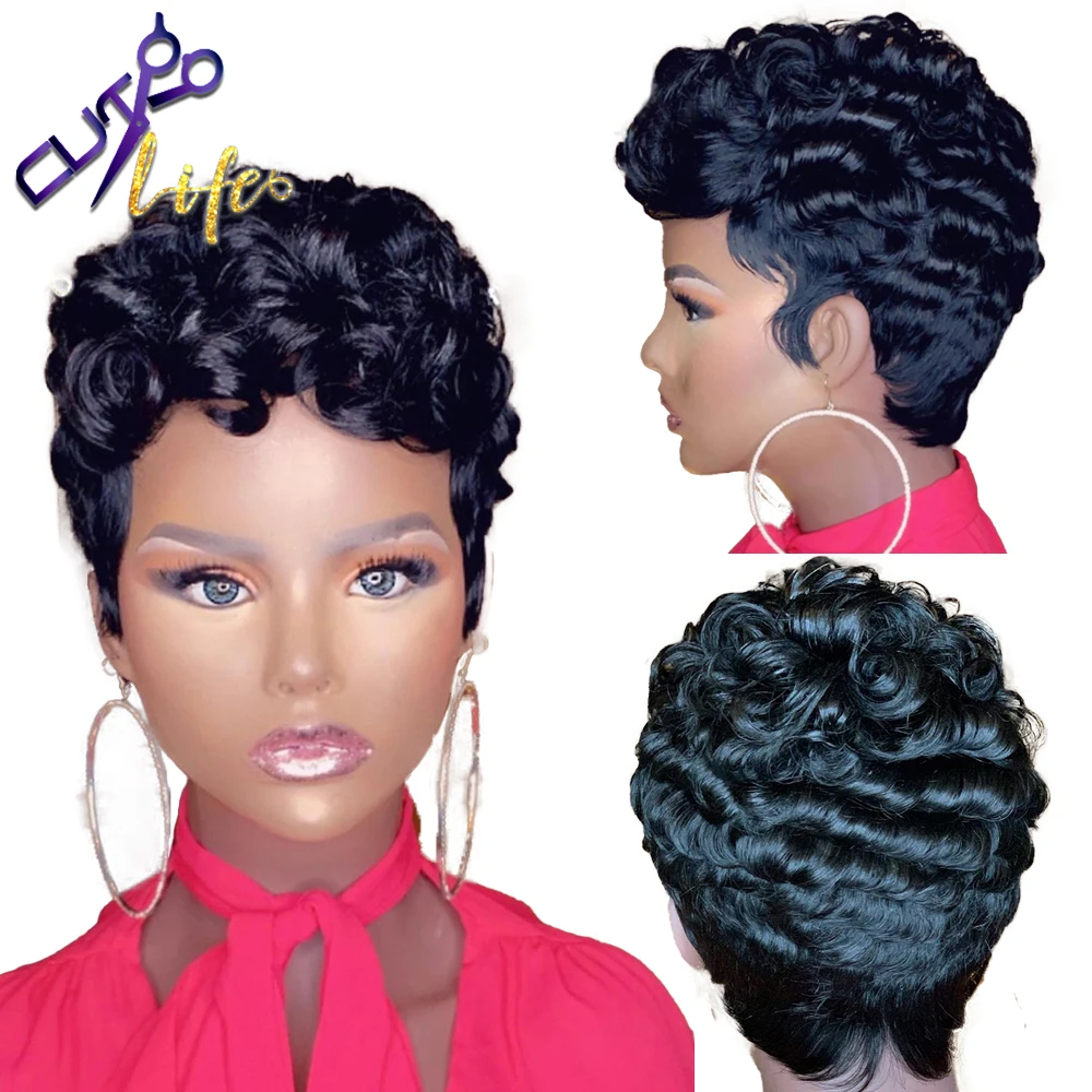 Парики из человеческих волос с челкой для чернокожих женщин, бразильские волосы Remy