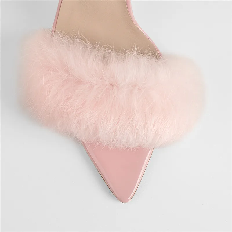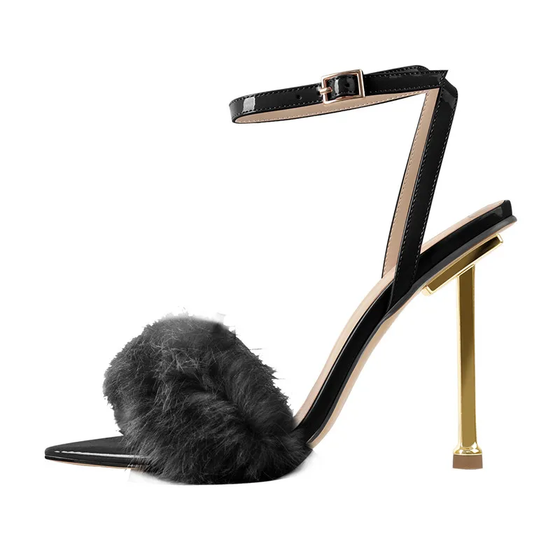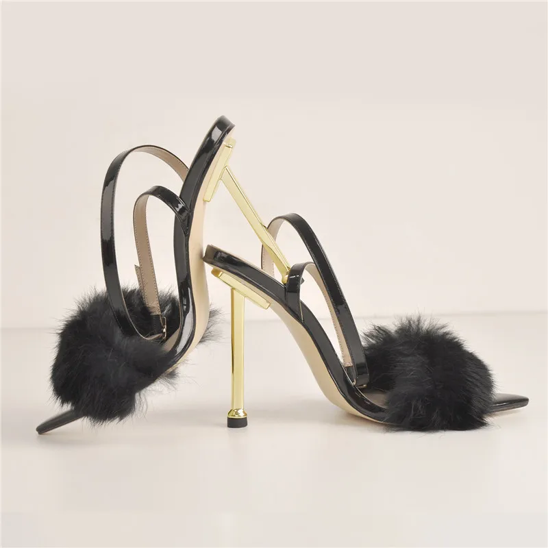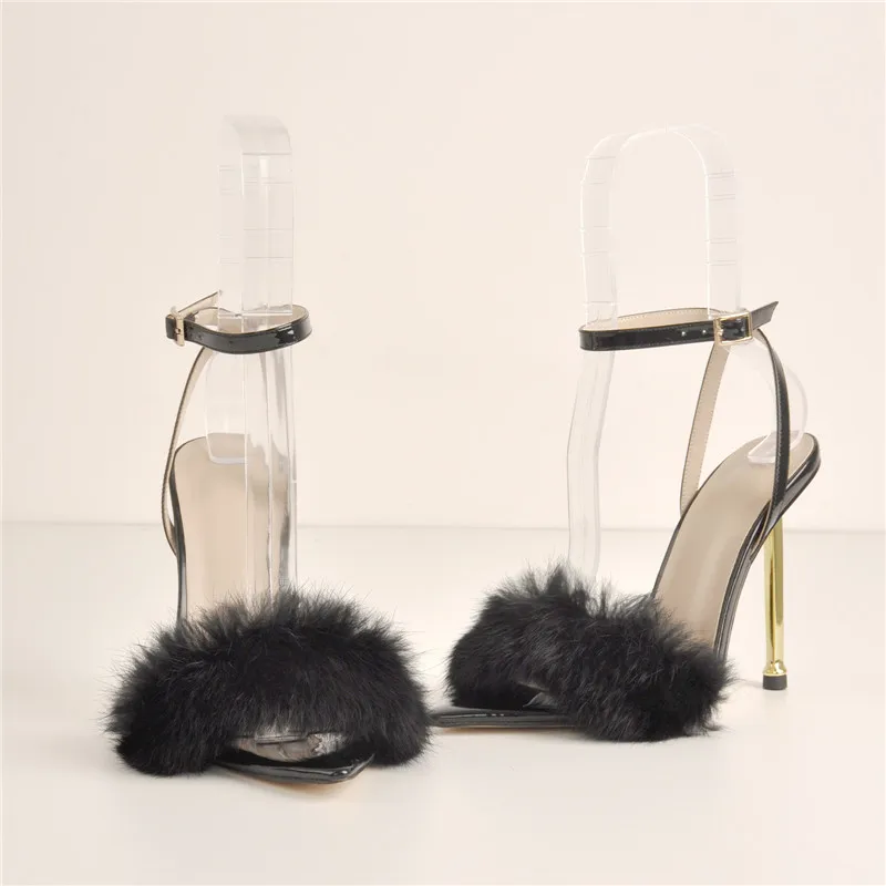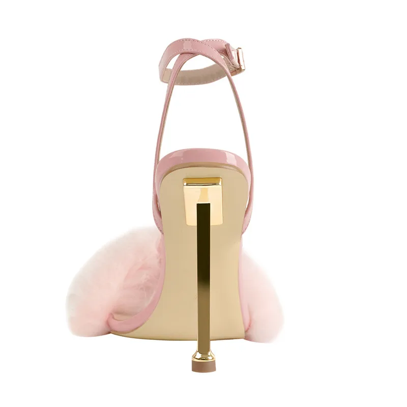 Босоножки Onlymaker, с открытым носком, на металлическом каблуке, с искусственным мехом, черные, розовые, тонкие, большие размеры