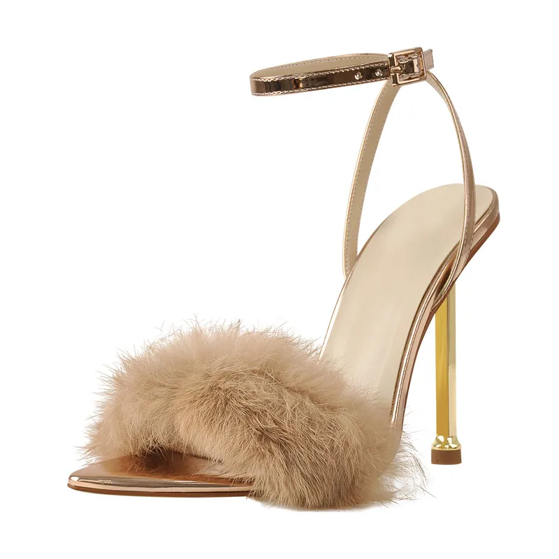 Сандалии женские Onlymaker, с искусственным мехом, тонкие, золотист...
