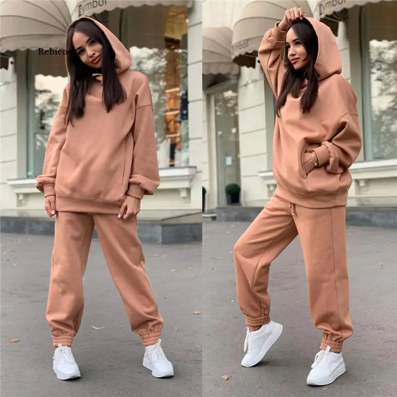 Комплект из двух предметов, повседневный флисовый спортивный костюм, женские зимние комплекты, толстовка с капюшоном и длинным рукавом, спортивные штаны, женский костюм